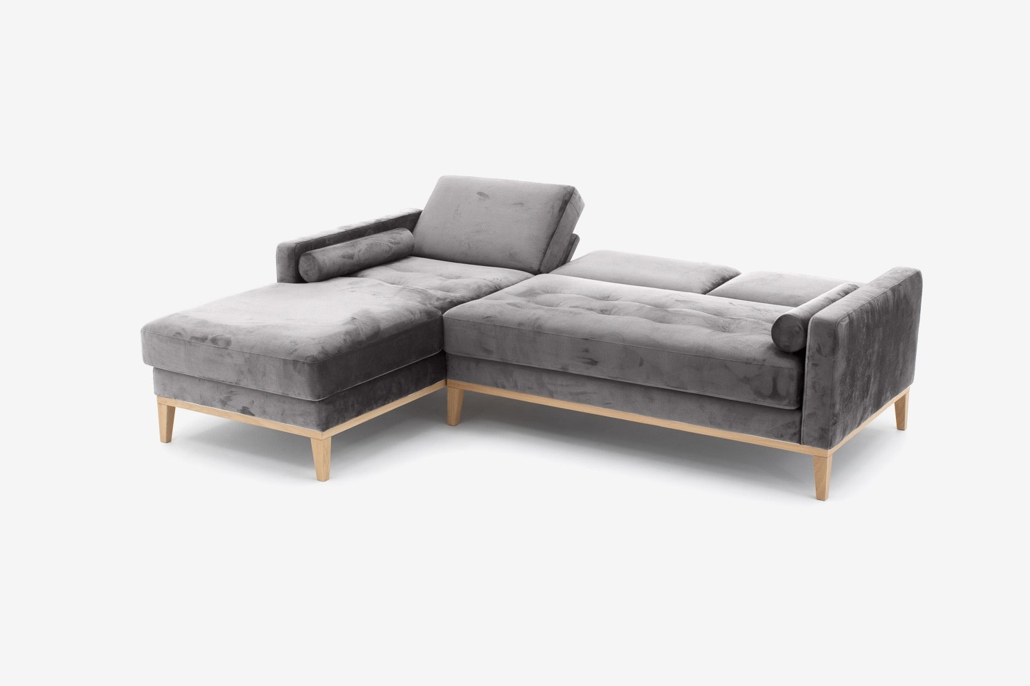 Das Ecksofa lässt sich einfach und bequem mit einem leichten Klick aufklappen, um den Winkel der Rückenlehne zu verändern. Diese Funktion sorgt für eine bequeme Liegefläche, ermöglicht aber auch die bequeme und individuelle Einstellung der Kissenneigung beim Sitzen auf dem Möbel.