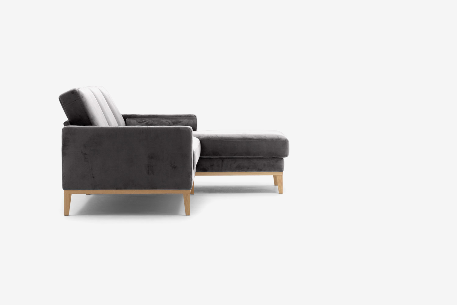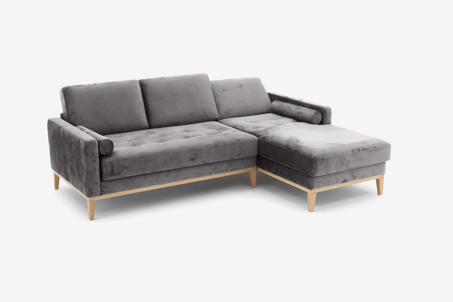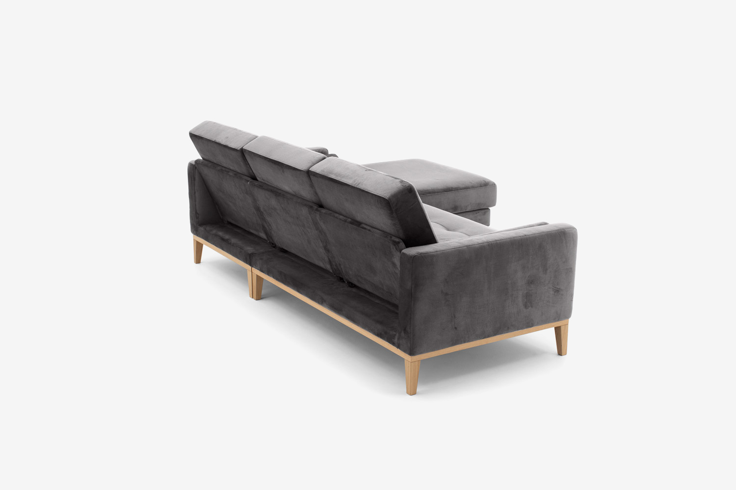 Die Beine und das Gestell des Ecksofas sind aus Holz, und dank ihrer Höhe ist die Reinigung unter dem Möbel einfach und angenehm. Diese Funktionalität kommt der Einfachheit des täglichen Gebrauchs sehr zugute, trägt aber auch zu seiner Eleganz bei.