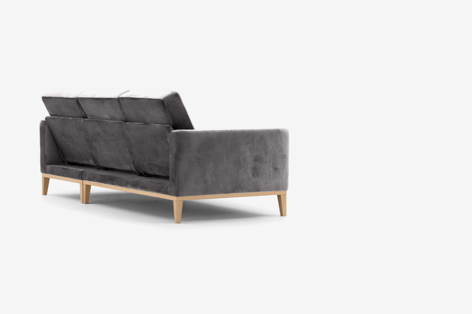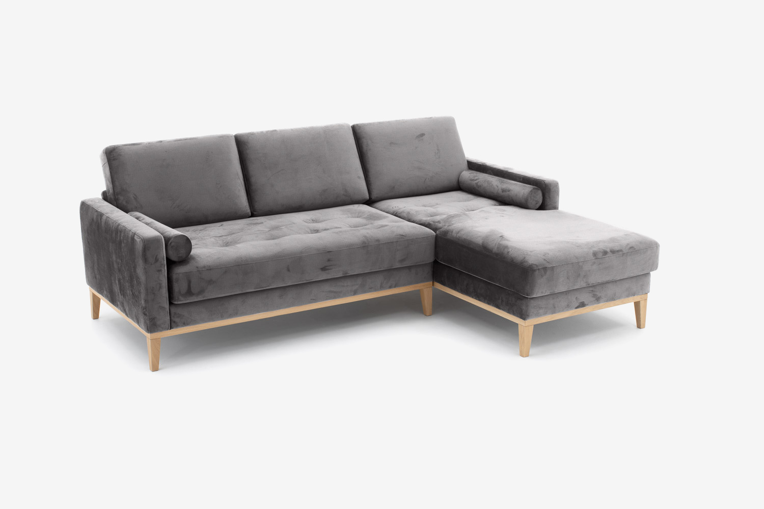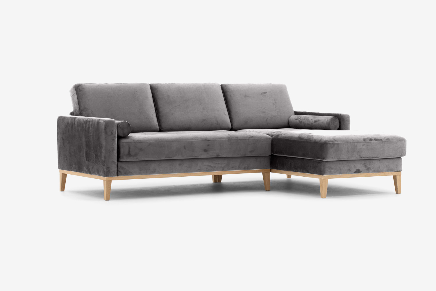 Die Beine und das Gestell des Ecksofas sind aus Holz, und dank ihrer Höhe ist die Reinigung unter dem Möbel einfach und angenehm. Diese Funktionalität kommt der Einfachheit des täglichen Gebrauchs sehr zugute, trägt aber auch zu seiner Eleganz bei.