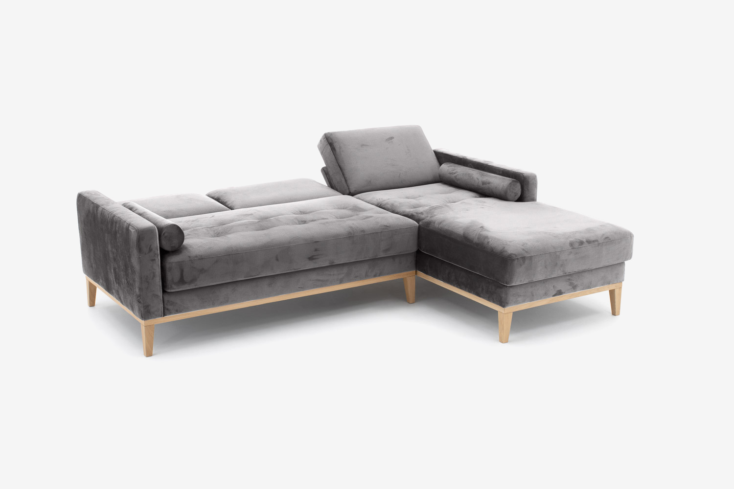 Das Ecksofa lässt sich einfach und bequem mit einem leichten Klick aufklappen, um den Winkel der Rückenlehne zu verändern. Diese Funktion sorgt für eine bequeme Liegefläche, ermöglicht aber auch die bequeme und individuelle Einstellung der Kissenneigung beim Sitzen auf dem Möbel.
