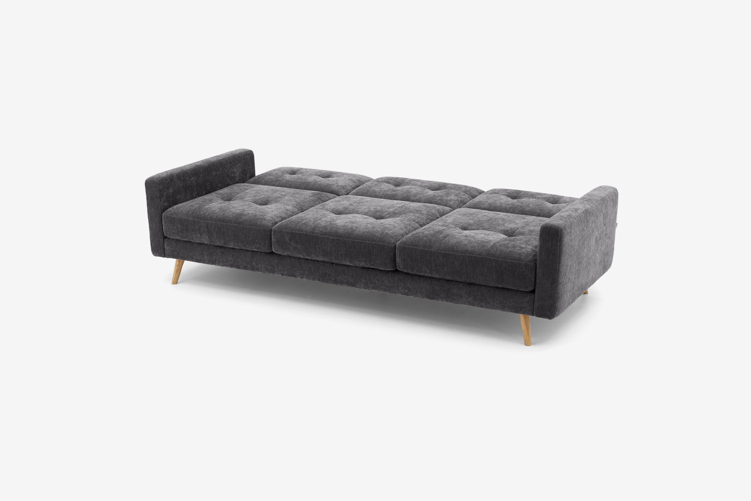 Das Sofa lässt sich einfach und bequem mit einem leichten Klick ausklappen, um den Winkel der Rückenlehne zu verändern. Diese Funktion bietet eine bequeme Liegefläche, ermöglicht aber auch eine bequeme und individuelle Einstellung der Kissenneigung beim Sitzen auf dem Möbel.