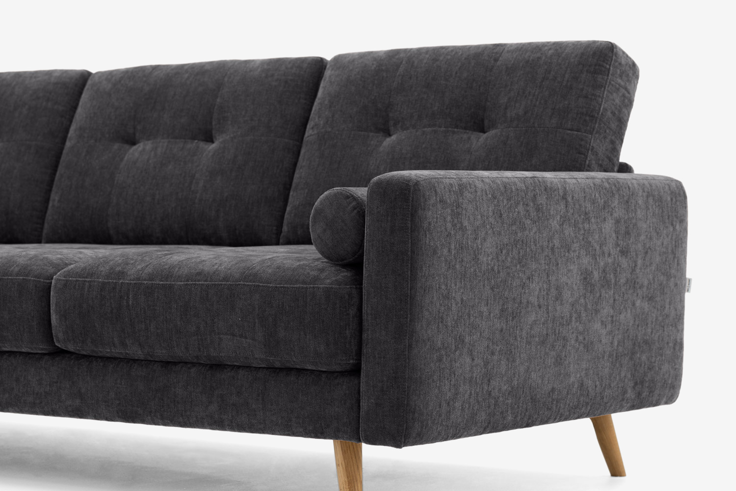 Die Beine des Sofas sind aus Holz und dank ihrer Höhe ist die Reinigung unter dem Möbel einfach und angenehm. Diese Funktionalität kommt der Einfachheit des täglichen Gebrauchs sehr zugute, trägt aber auch zu seiner Eleganz bei.