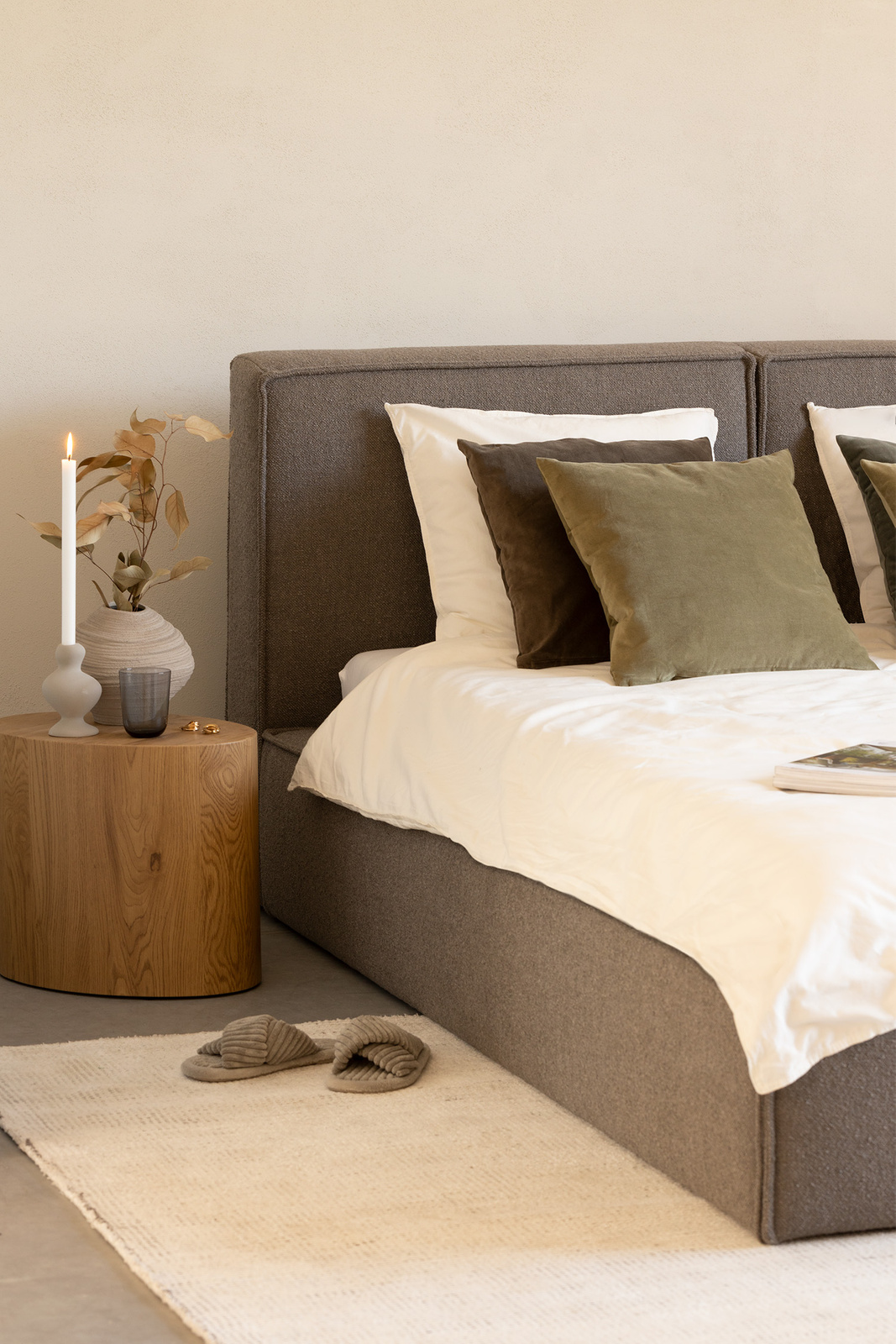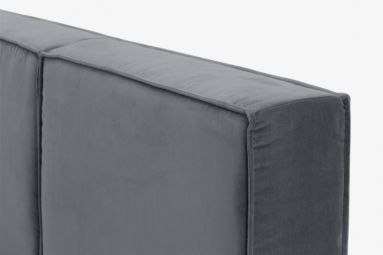 Die Verwendung einer dekorativen Naht in jedem Modul unterstreicht die quadratische Form und verleiht der Kollektion ein gemütliches Aussehen.