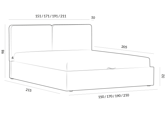 140 x 200 cm / 160 x 200 cm / 180 x 200 cm / 200 x 200 cm