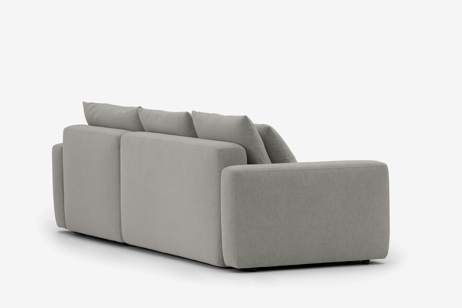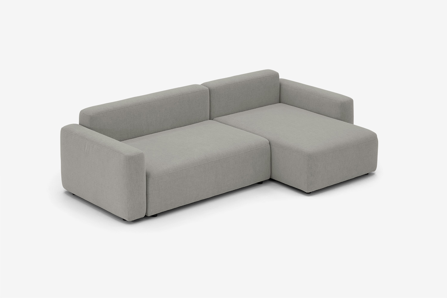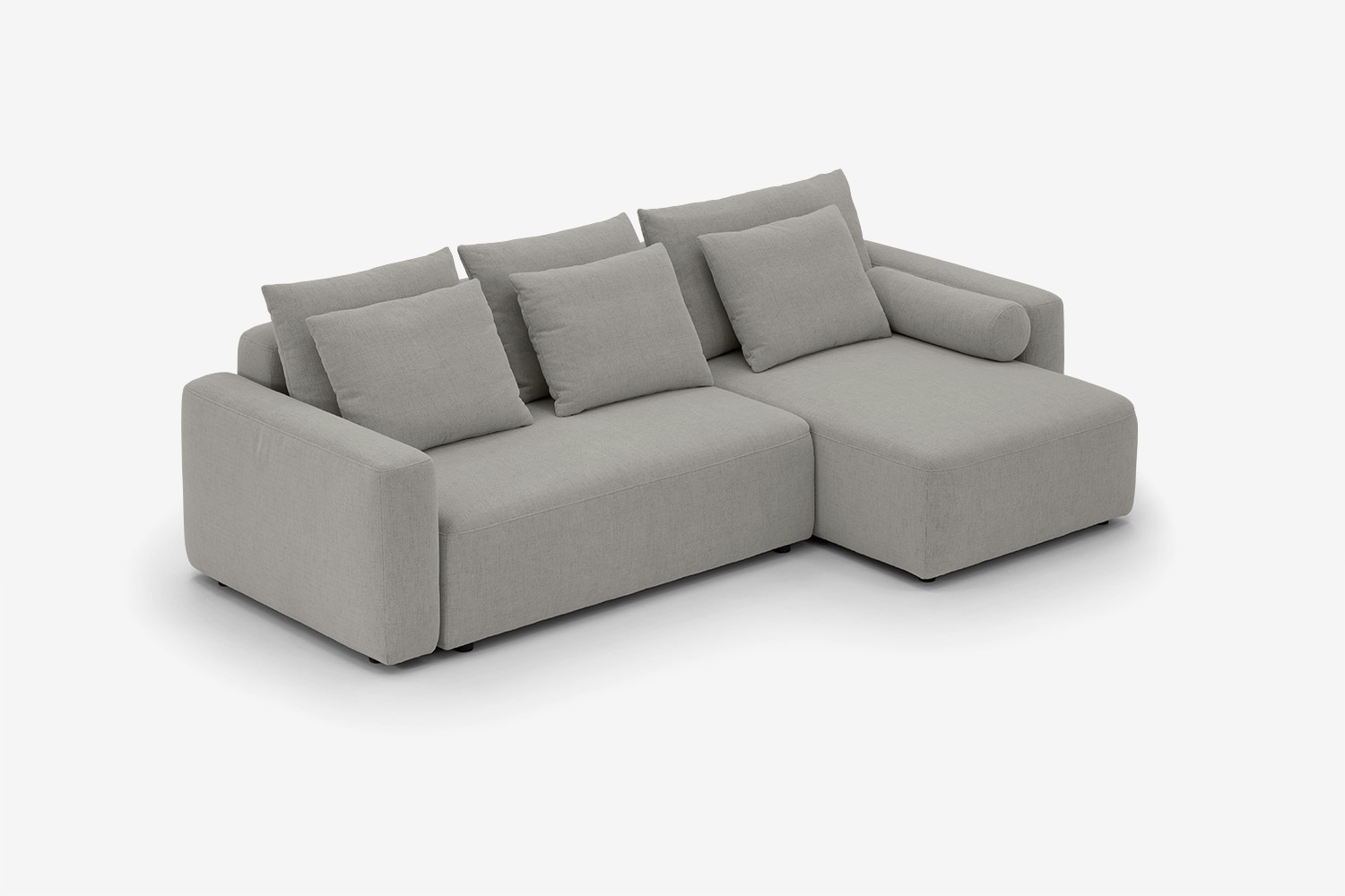 Mit nur 4 cm langen Beinen scheint das Ecksofa zu schweben.