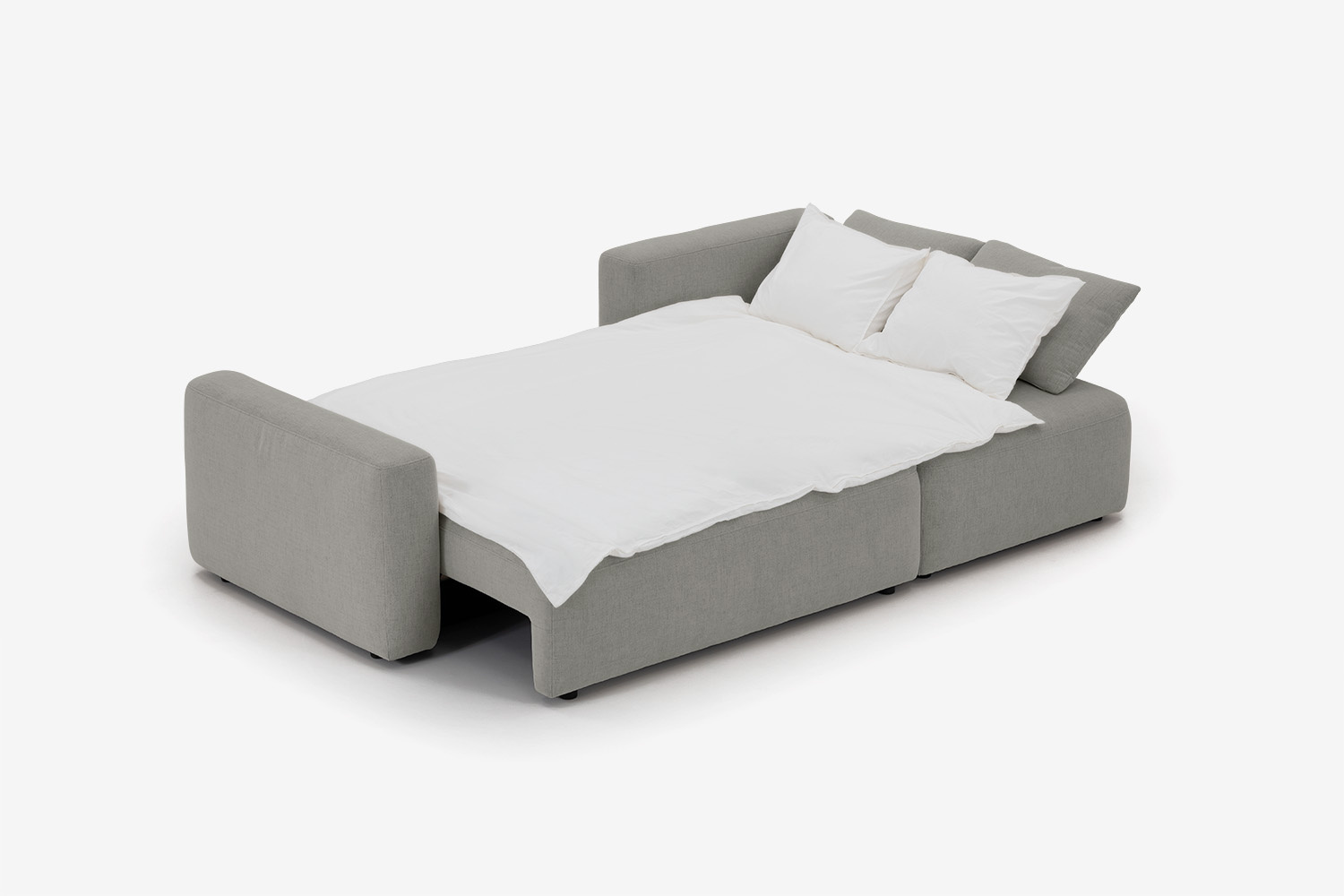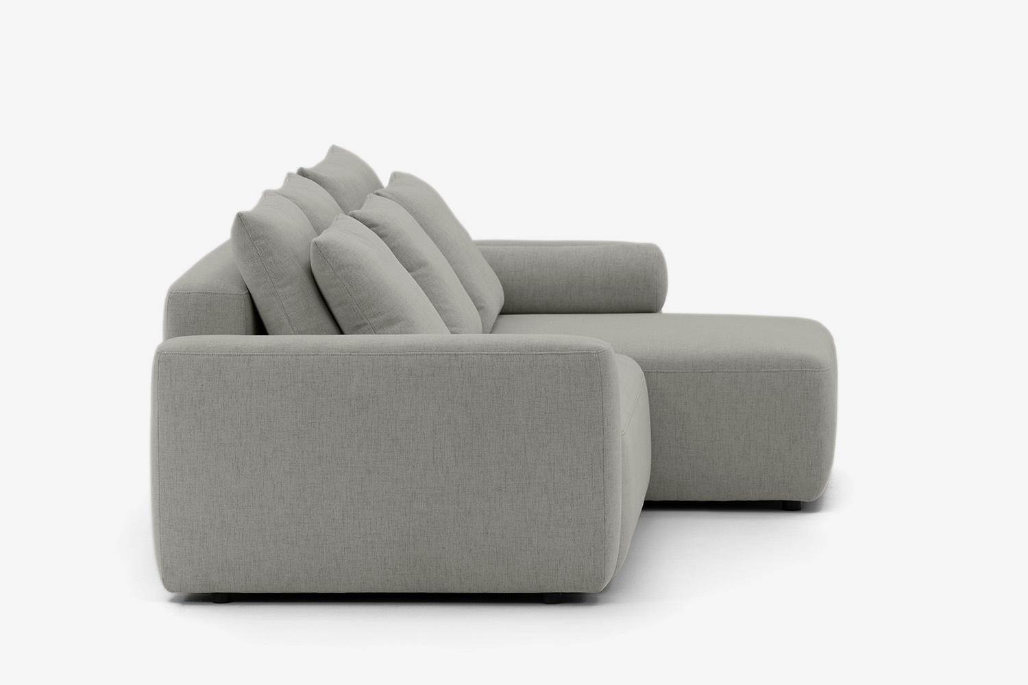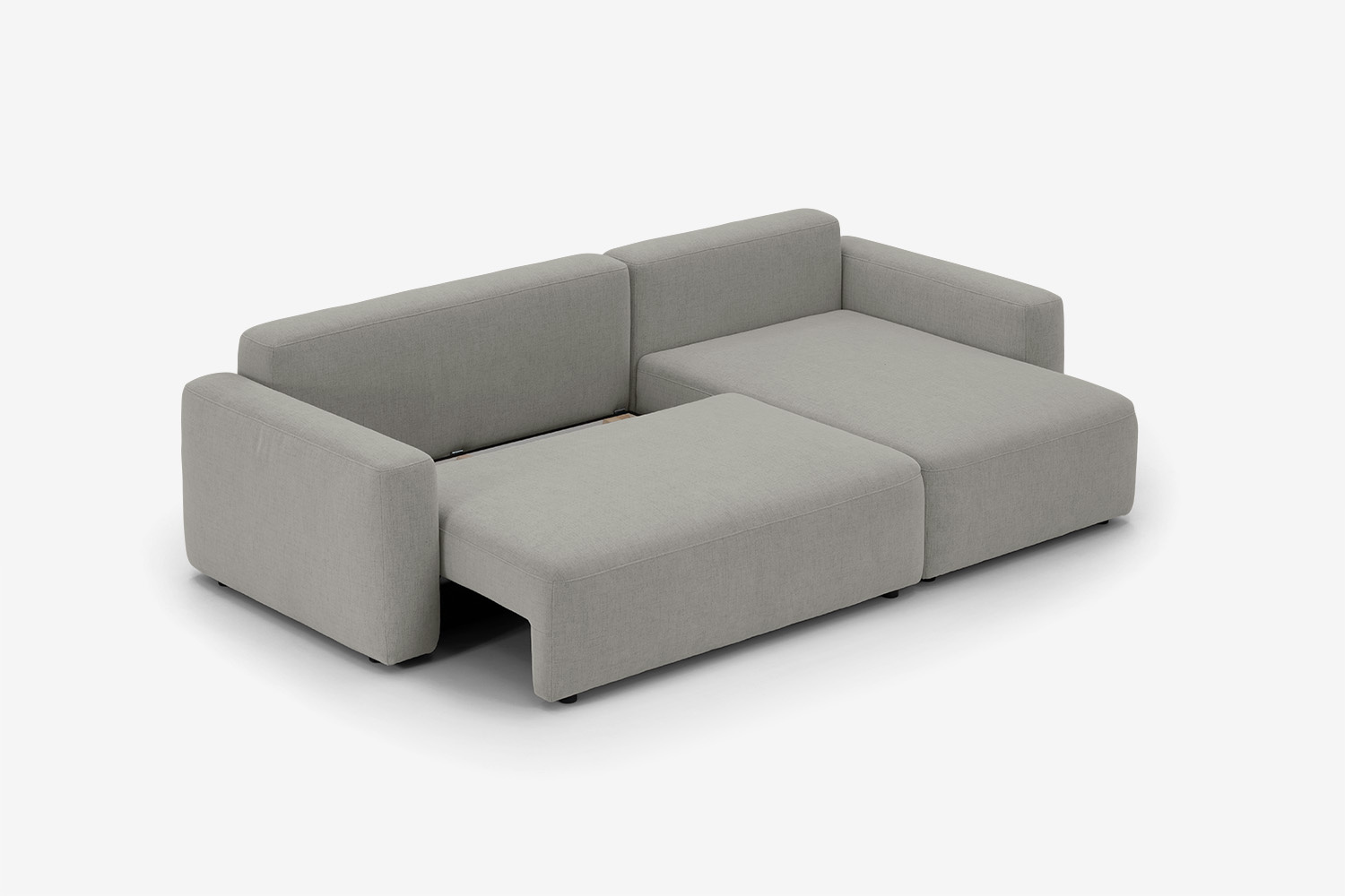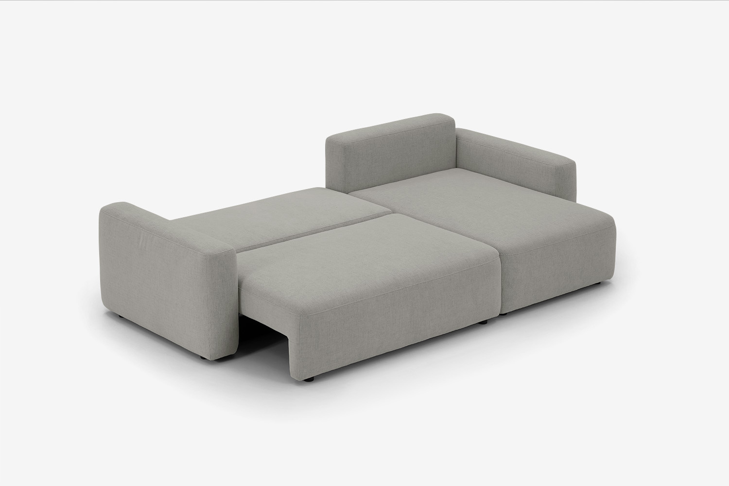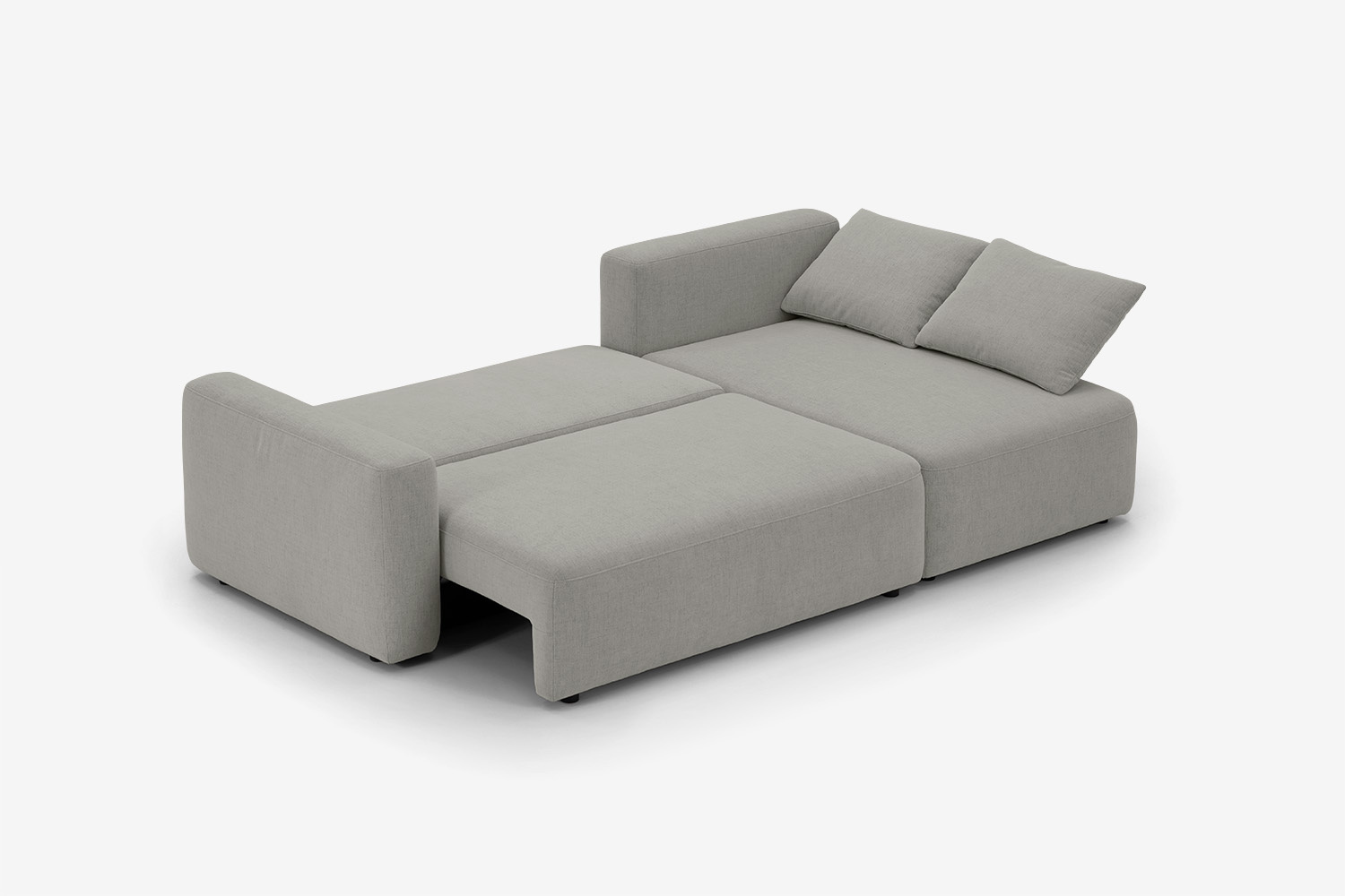 Das DL-System ist sehr einfach und intuitiv. Um das Ecksofa so aufzuklappen, dass Sie eine ebene und federnde Liegefläche haben, schieben Sie einfach den Sitz heraus und klappen dann die Rückenlehne um.