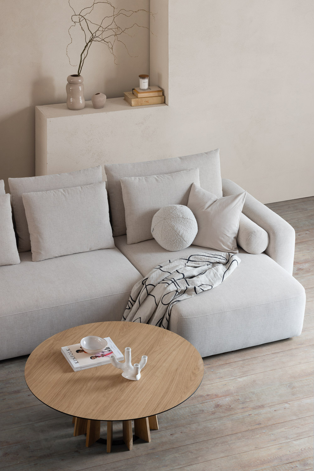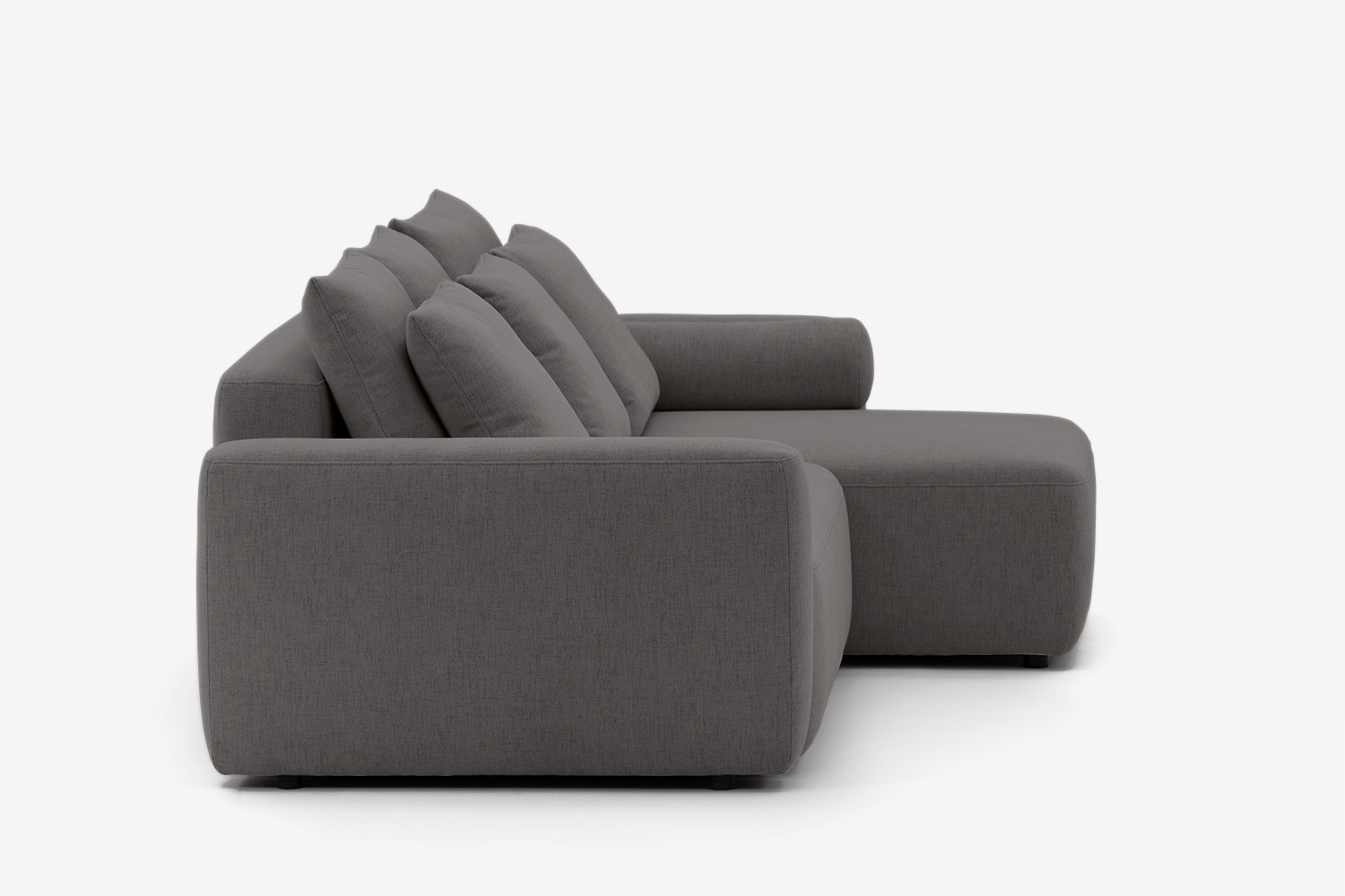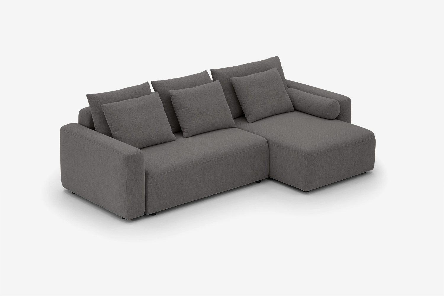 Mit nur 4 cm langen Beinen scheint das Ecksofa zu schweben.