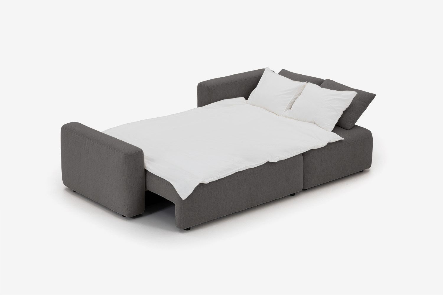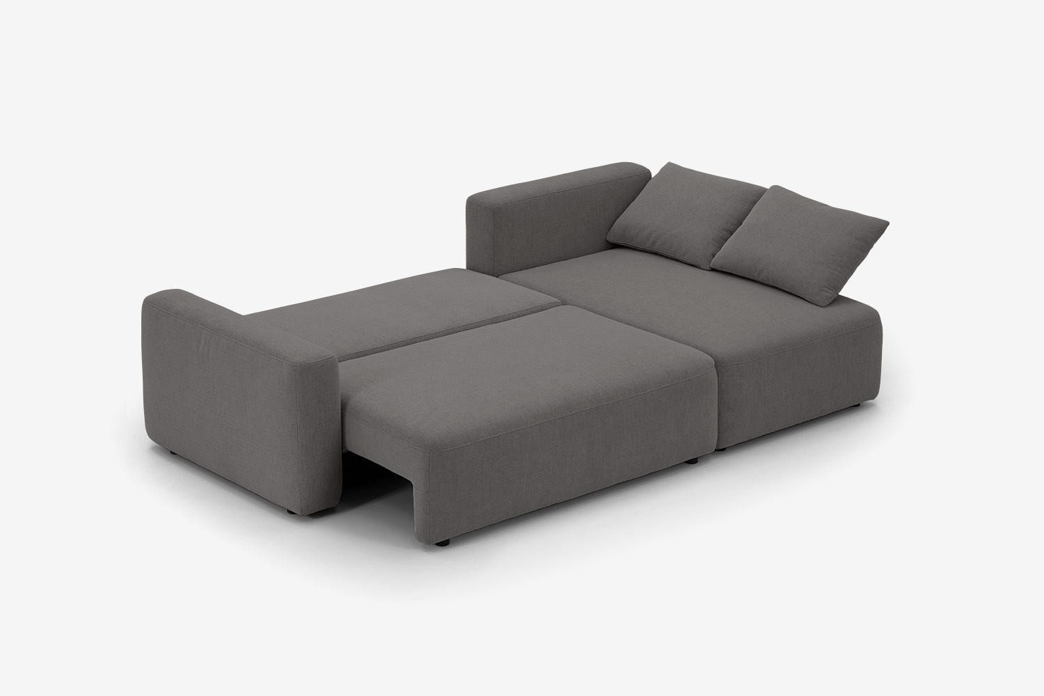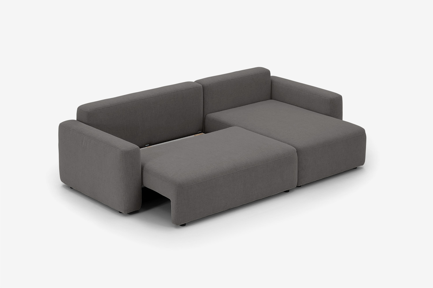 Das DL-System ist sehr einfach und intuitiv. Um das Ecksofa so aufzuklappen, dass Sie eine ebene und federnde Liegefläche haben, schieben Sie einfach den Sitz heraus und klappen dann die Rückenlehne um.