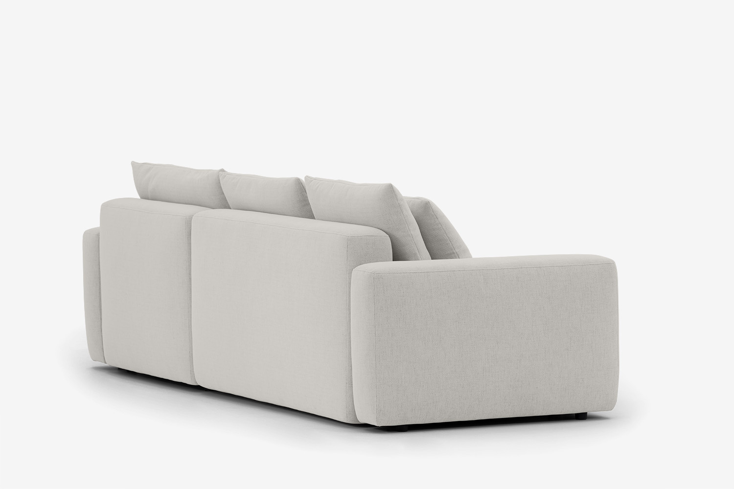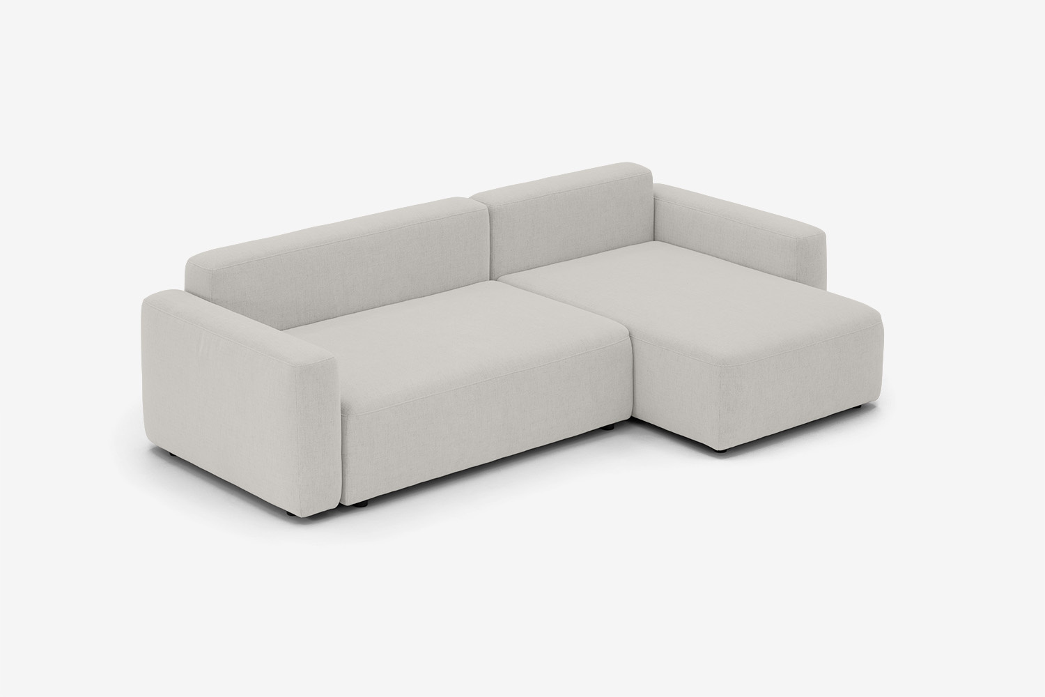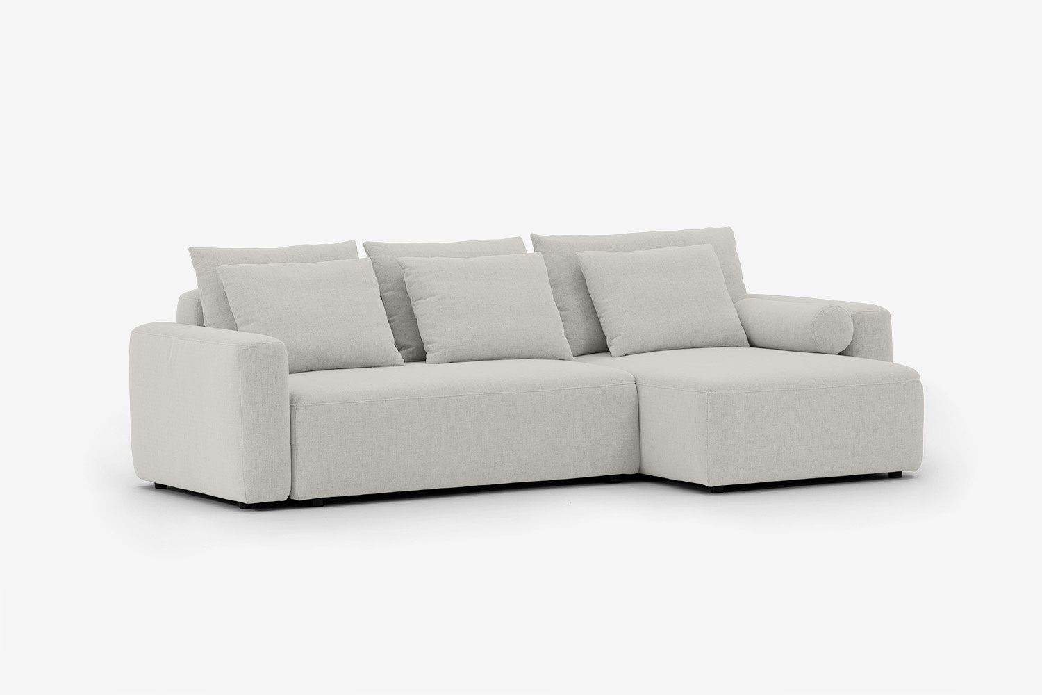 Mit nur 4 cm langen Beinen scheint das Ecksofa zu schweben.