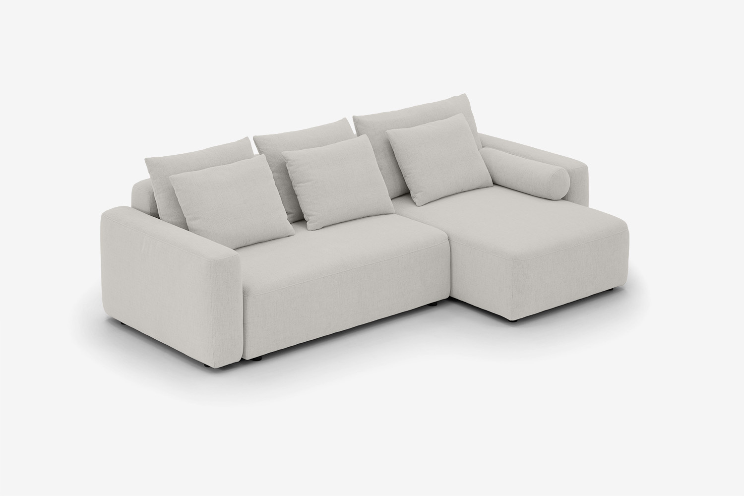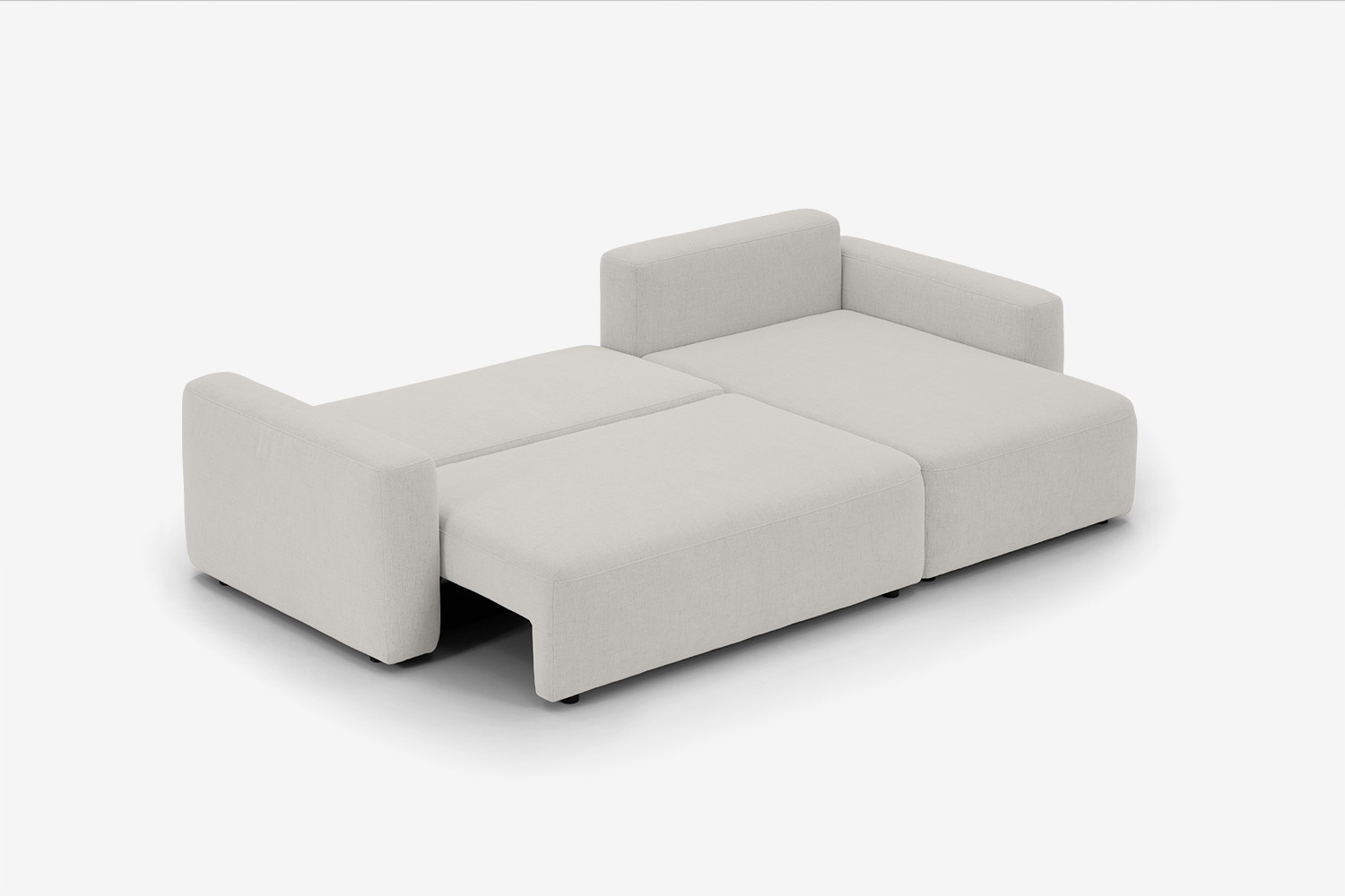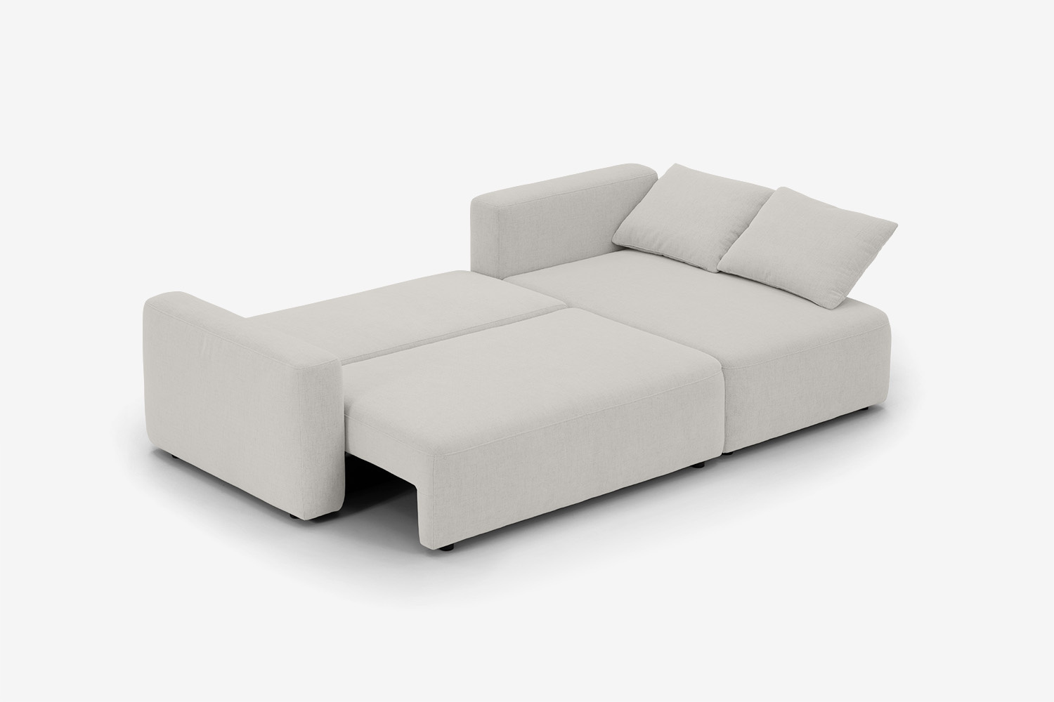 Das DL-System ist sehr einfach und intuitiv. Um das Ecksofa so aufzuklappen, dass Sie eine ebene und federnde Liegefläche haben, schieben Sie einfach den Sitz heraus und klappen dann die Rückenlehne um.