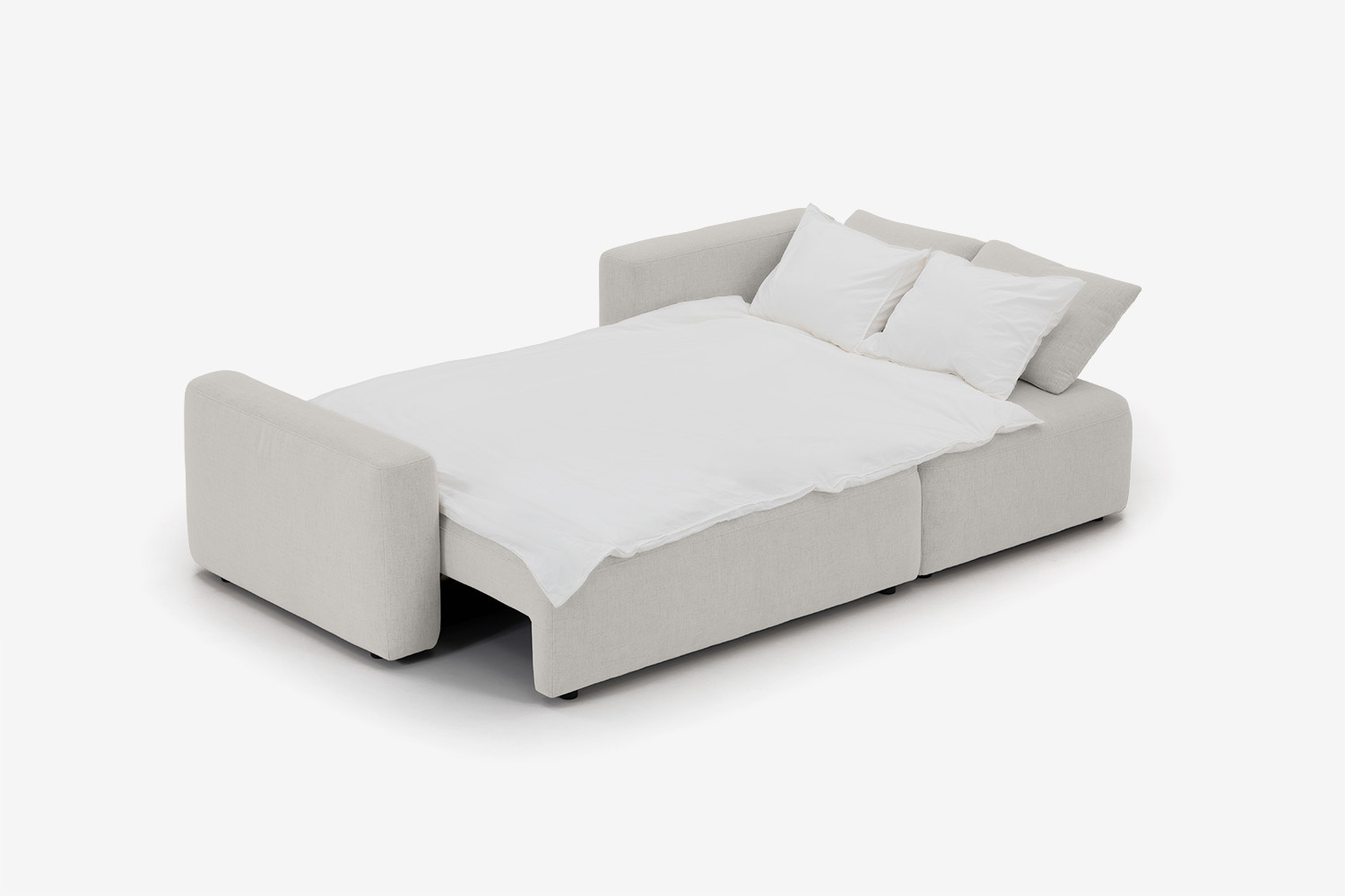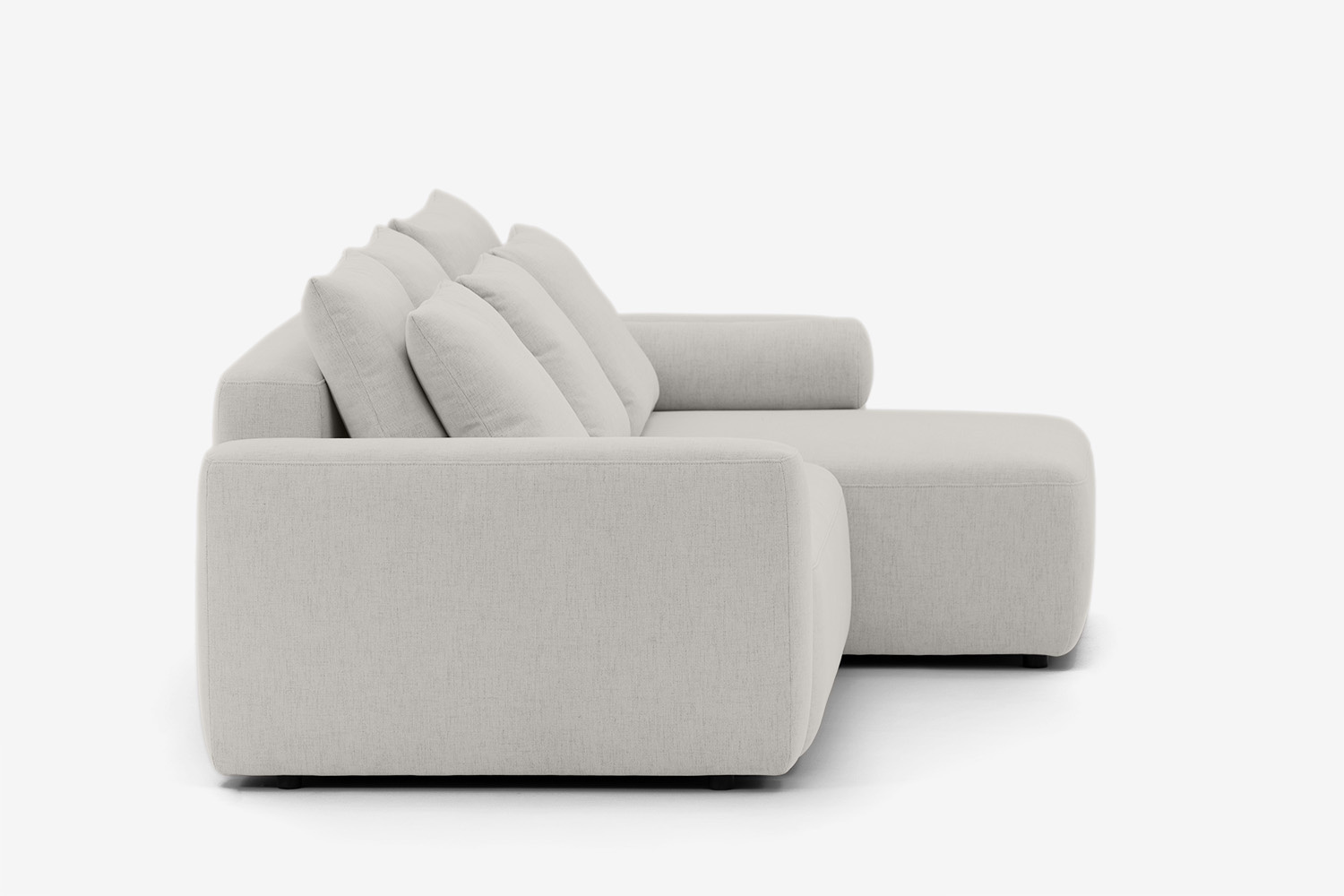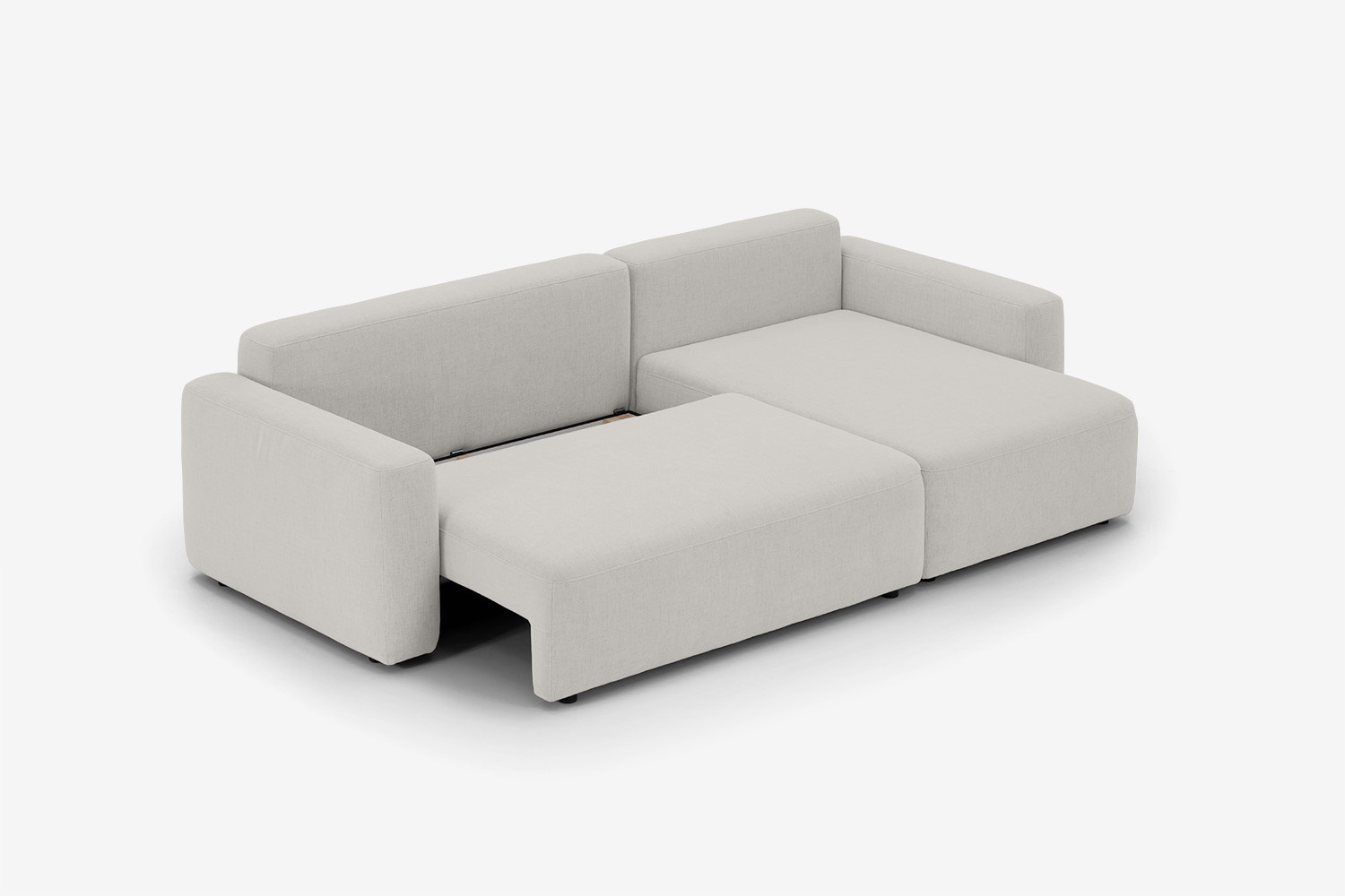 Das DL-System ist sehr einfach und intuitiv. Um das Ecksofa so aufzuklappen, dass Sie eine ebene und federnde Liegefläche haben, schieben Sie einfach den Sitz heraus und klappen dann die Rückenlehne um.