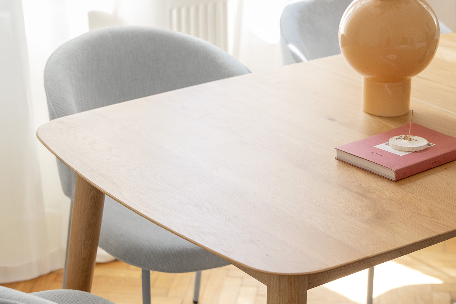 Tischplatte aus massiver Eiche und mit natürlichem Öl-Wachs beschichtet