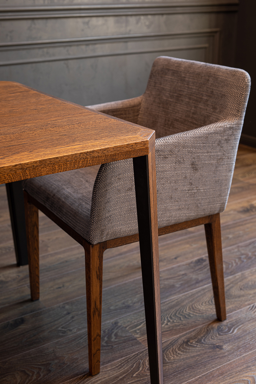 Die Kombination aus Metall und natürlichem Eichenholz verleiht den Tischbeinen ein einzigartiges und designorientiertes Aussehen.
