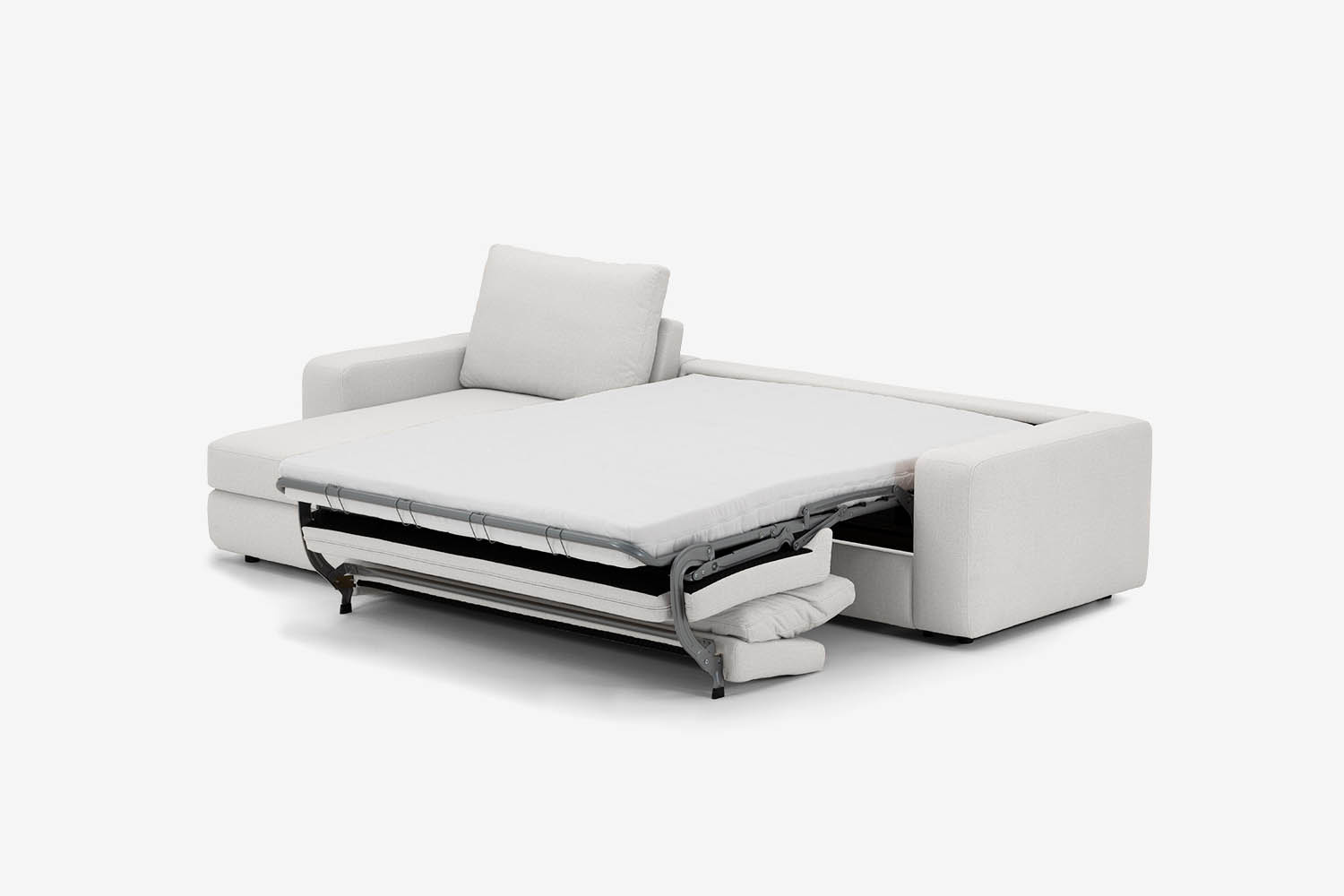 Dank des italienischen Klappsystems verwandelt sich das Sofa mit einer einzigen Bewegung in ein Bett mit einer mit hochelastischem Schaumstoff gefüllten Matratze.