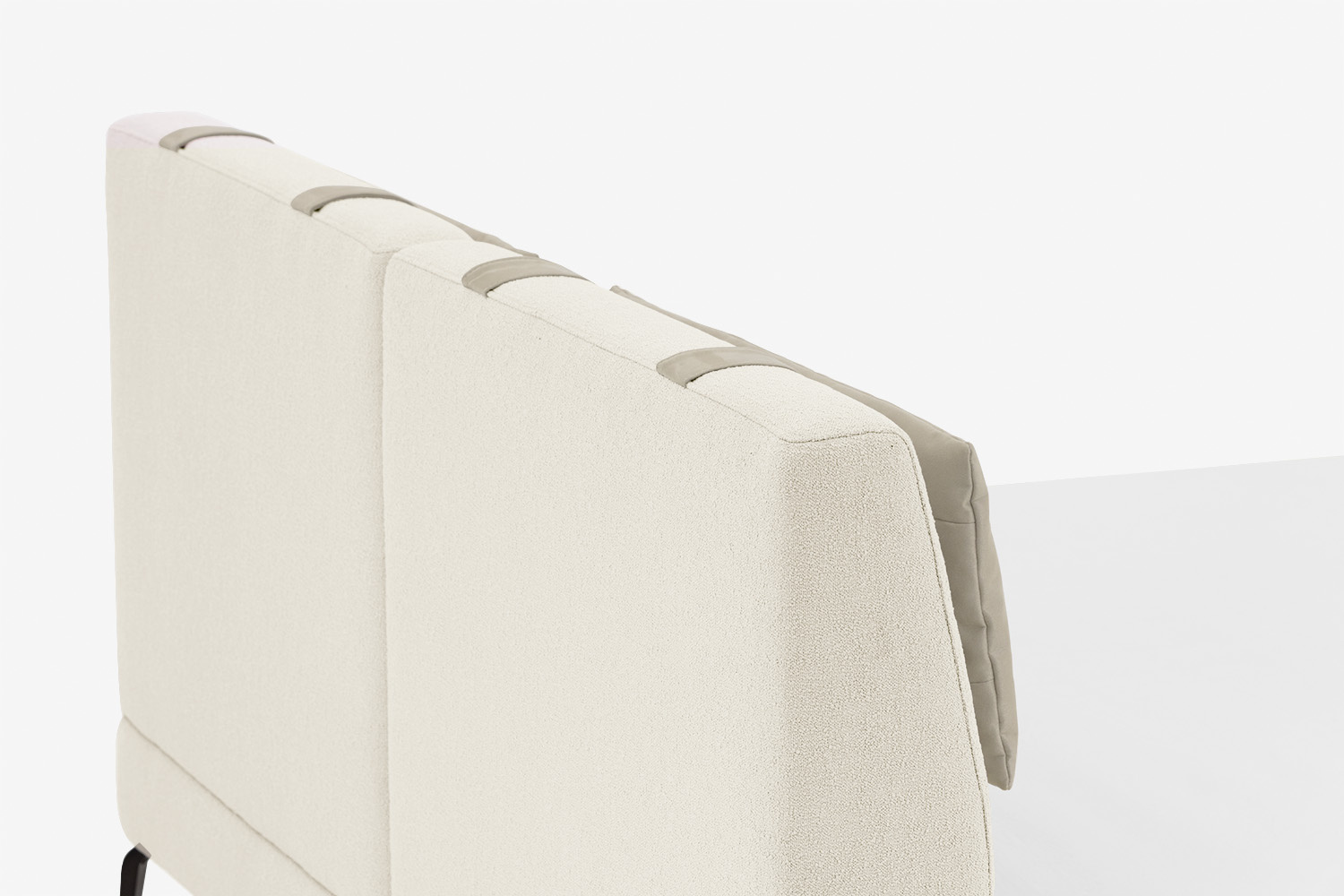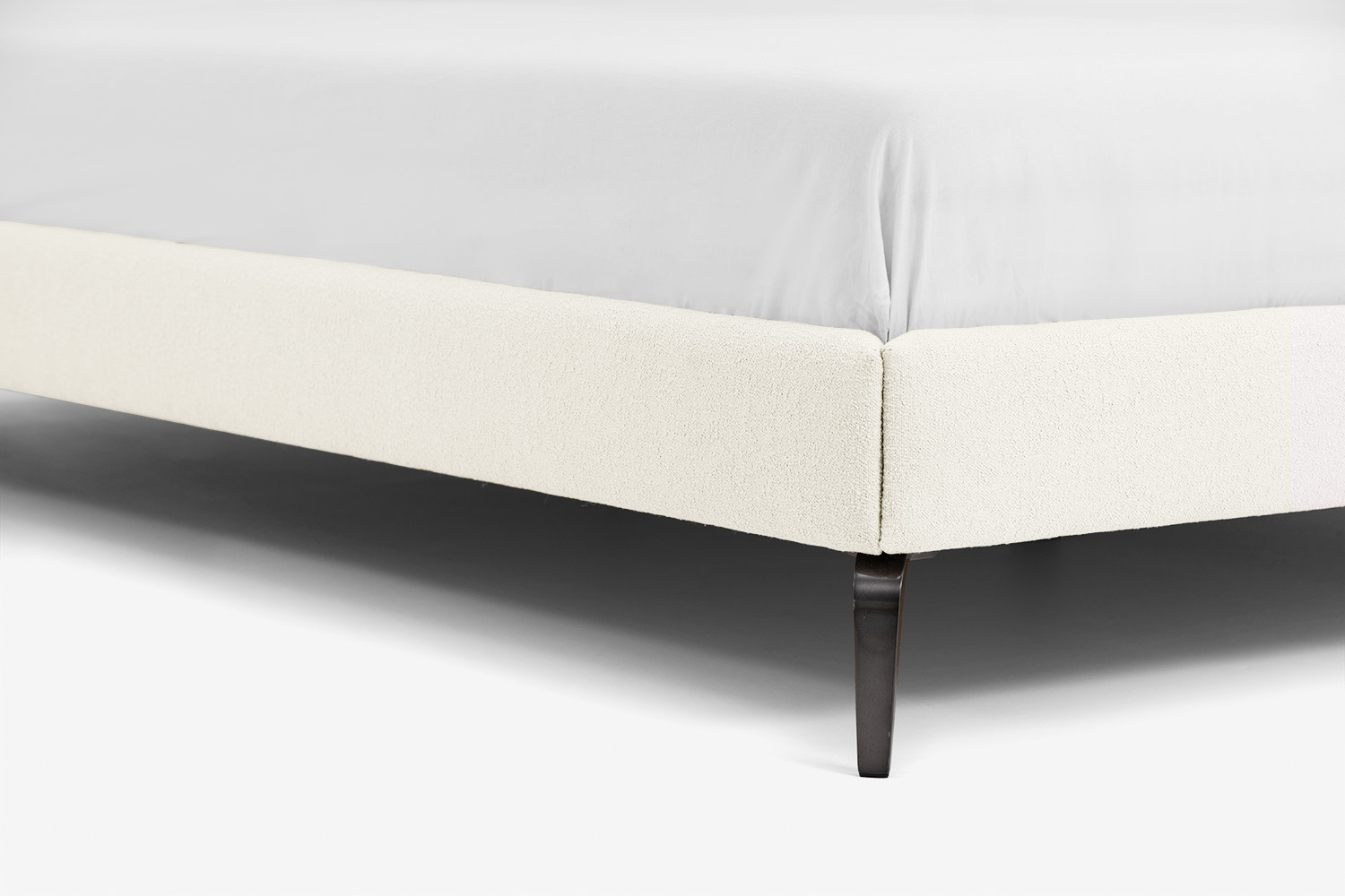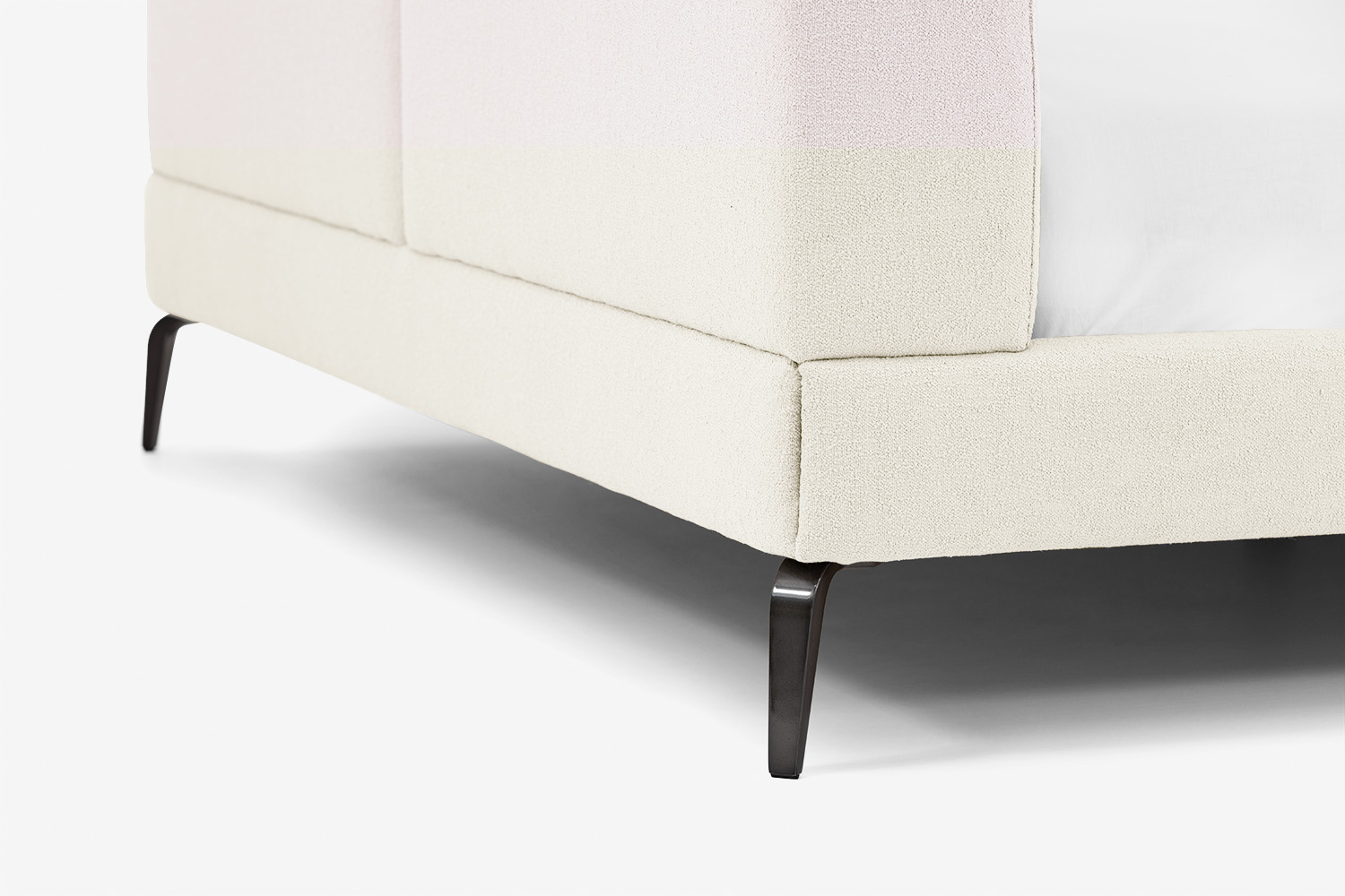 Die Beine aus hochwertigem Metall verleihen dem Möbel Leichtigkeit und einen minimalistischen Charakter, während der freie Raum unter dem Bett u. a. mit einer Fußbodenheizung zusammenarbeitet, die für eine reibungslose Luftzirkulation sorgt.
