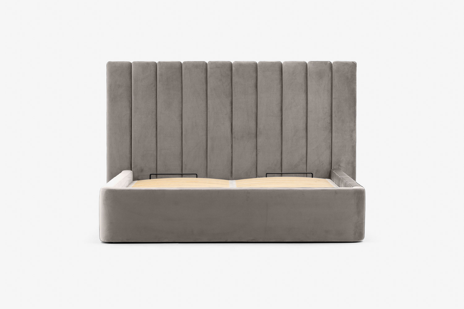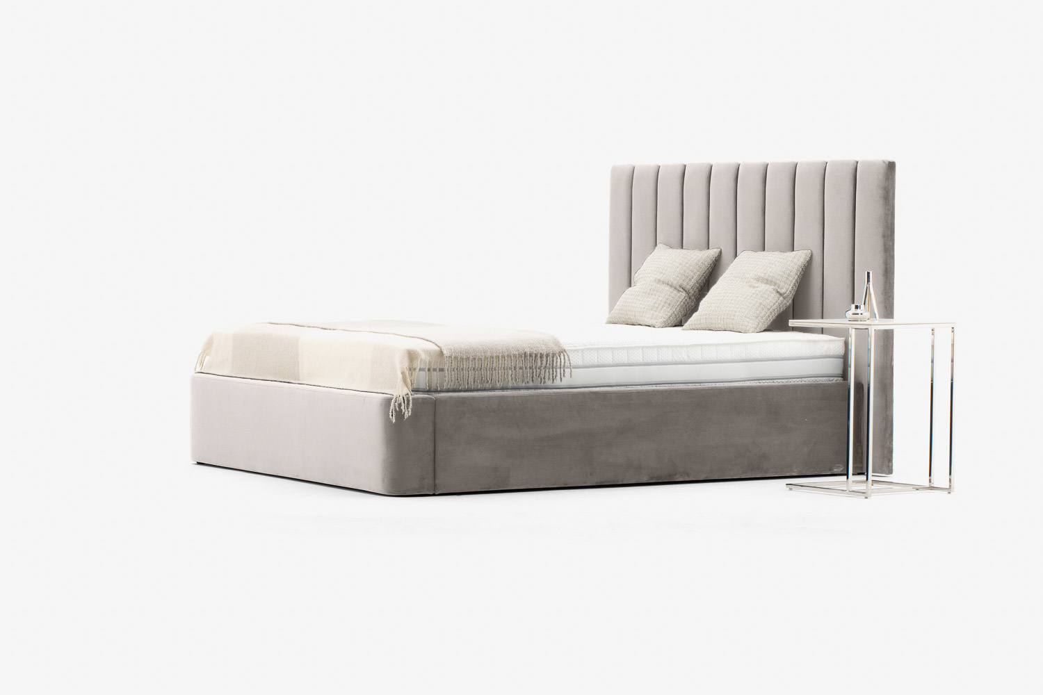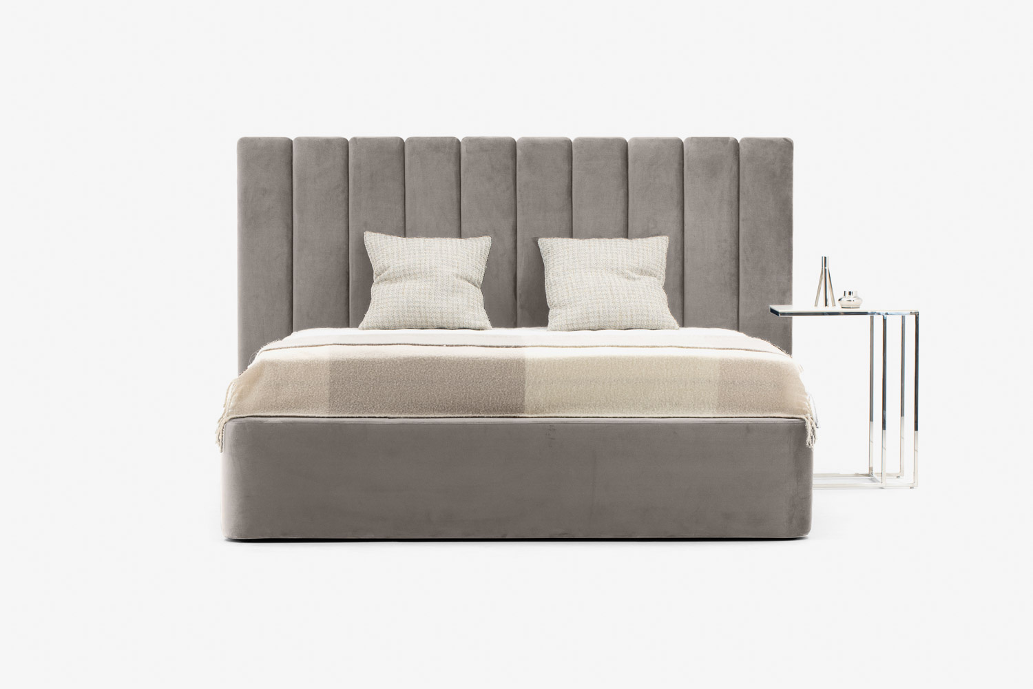 Das Kopfteil des Bettes besteht aus vertikalen Streifen, die jedes Schlafzimmer erwärmen und ihm eine weiche und gemütliche Atmosphäre verleihen.