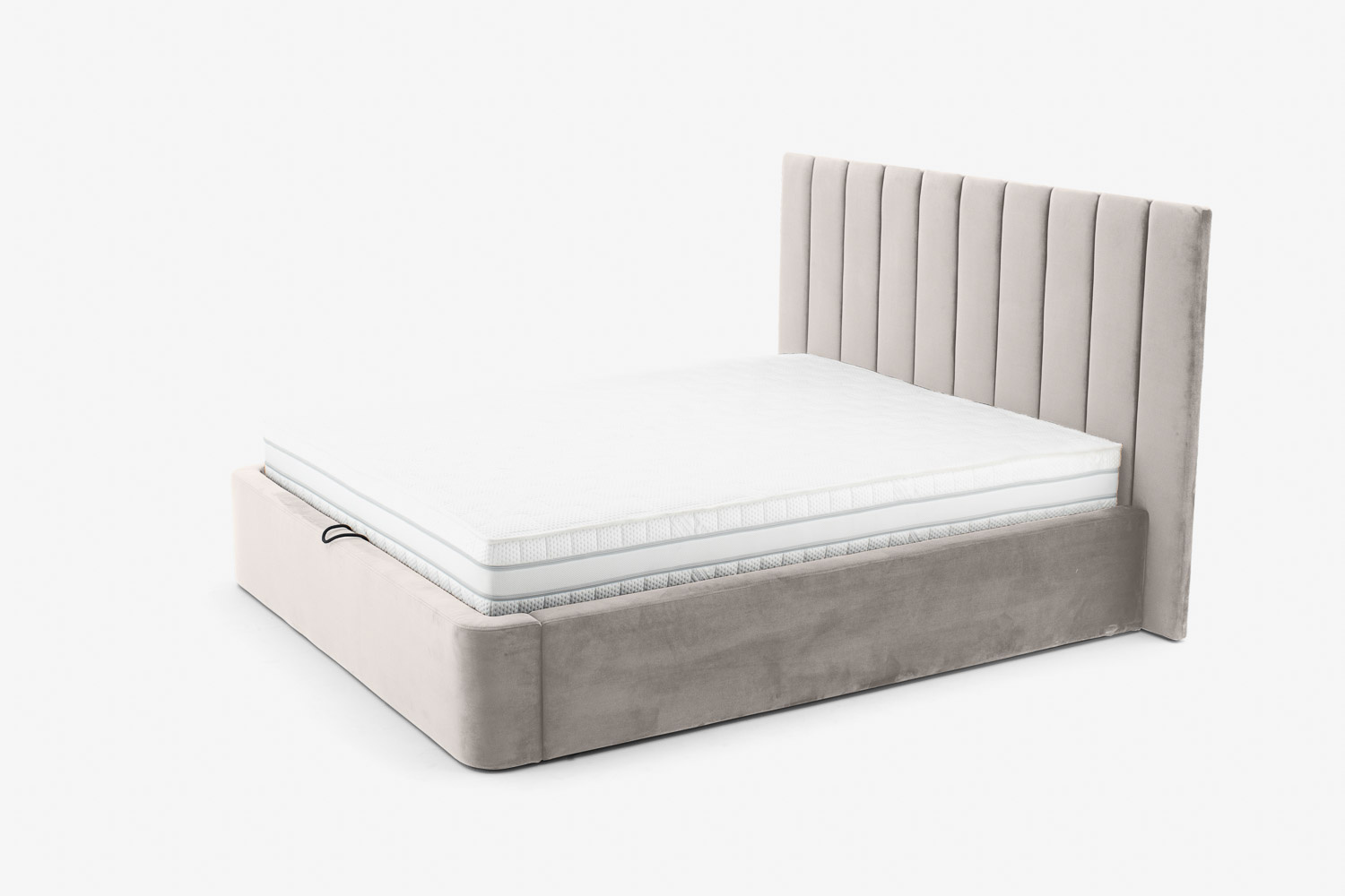 Das Kopfteil des Bettes besteht aus vertikalen Streifen, die jedes Schlafzimmer erwärmen und ihm eine weiche und gemütliche Atmosphäre verleihen.