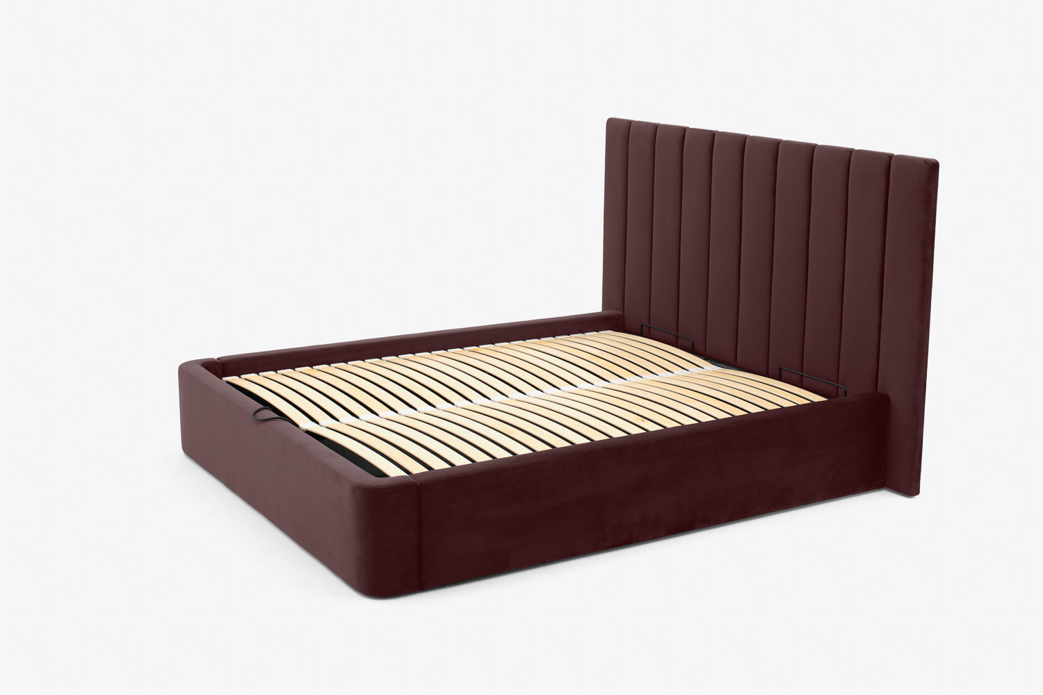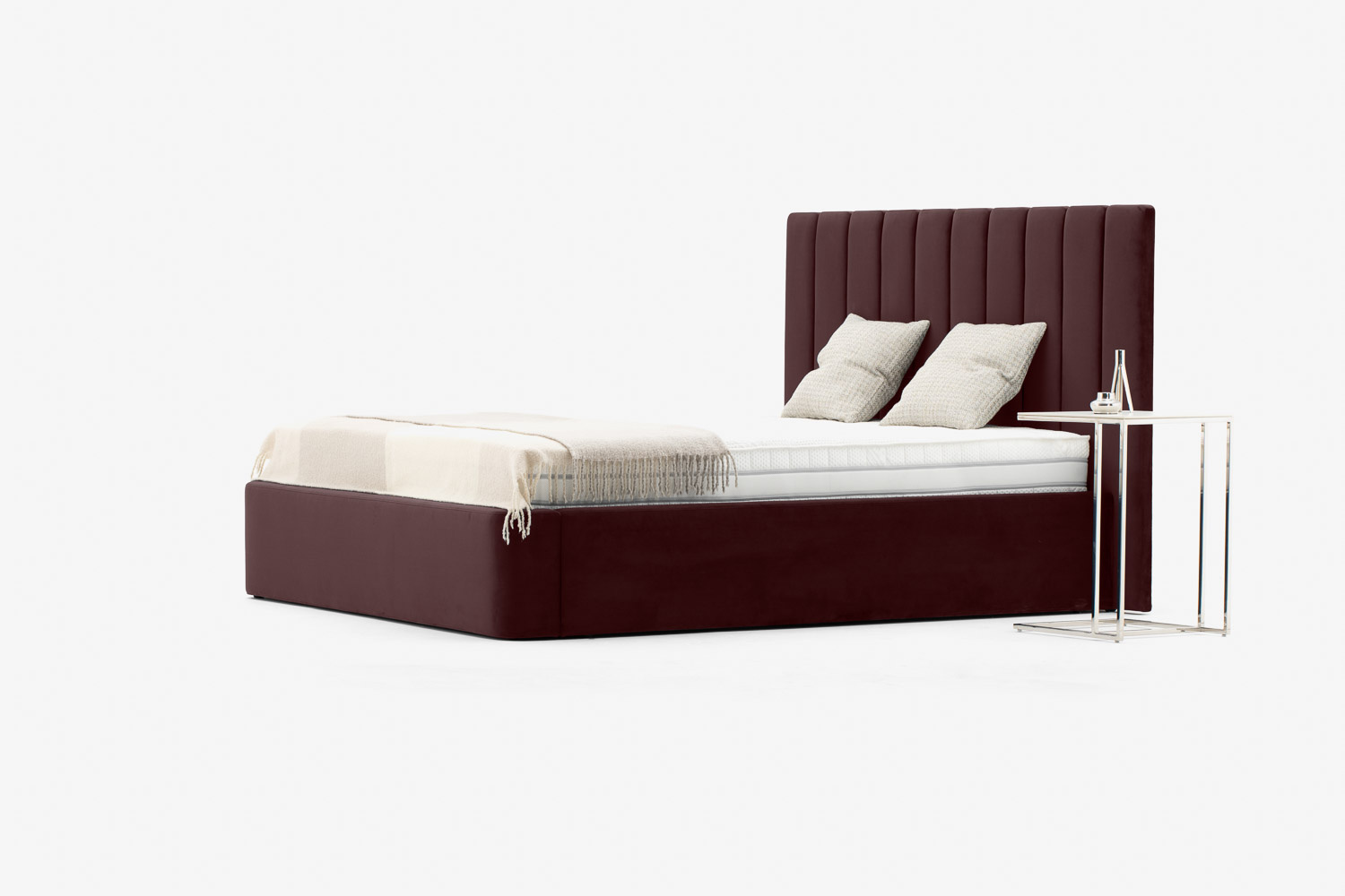 Das Kopfteil des Bettes besteht aus vertikalen Streifen, die jedes Schlafzimmer erwärmen und ihm eine weiche und gemütliche Atmosphäre verleihen.