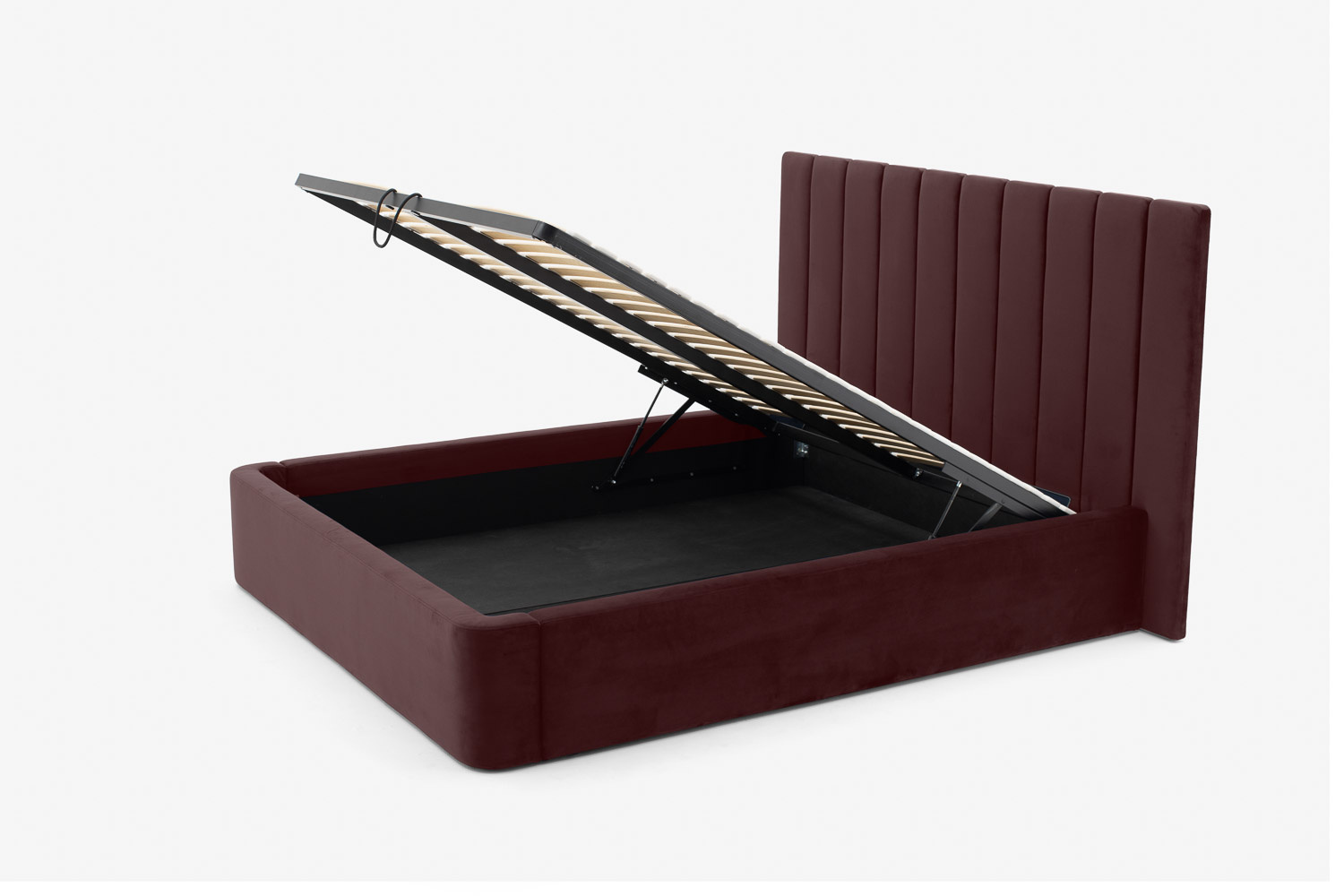 Der Vorteil des Bettes liegt in der funktionalen Nutzung des Raumes unter dem Möbel, in dem sich ein großer und geräumiger Bettzeugbehälter verbirgt.