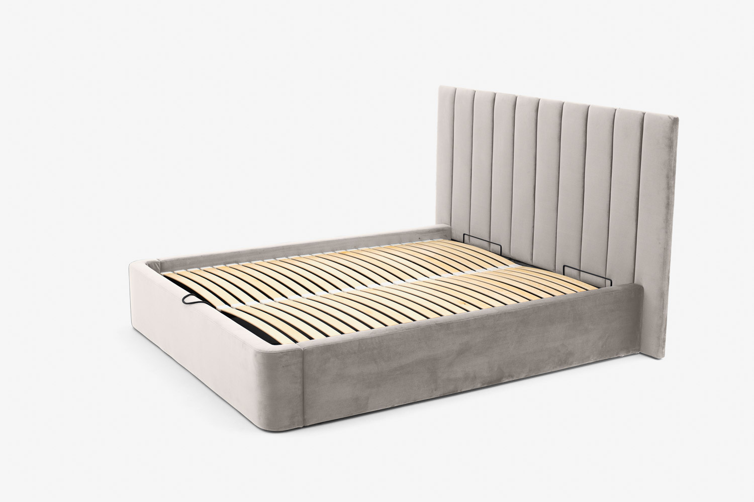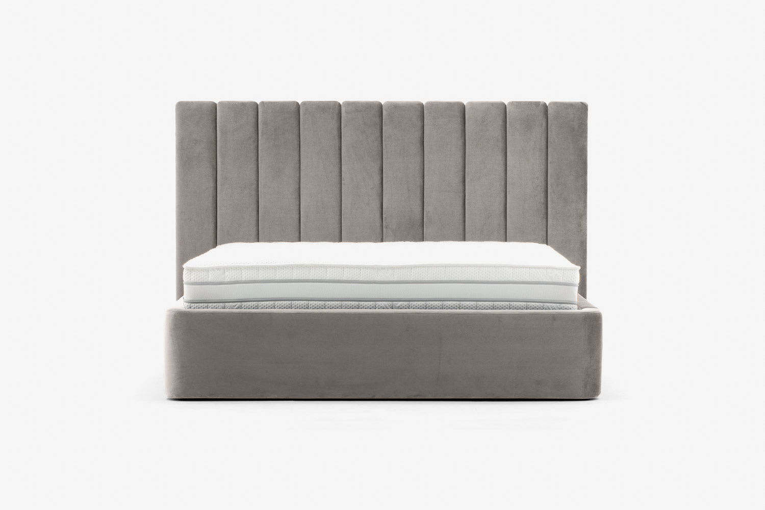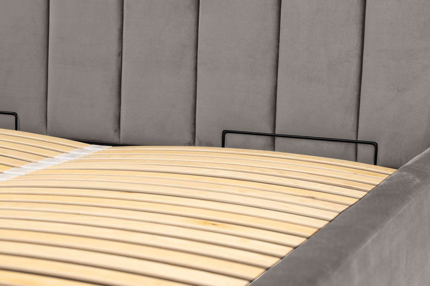 Das Kopfteil des Bettes besteht aus vertikalen Streifen, die jedes Schlafzimmer erwärmen und ihm eine weiche und gemütliche Atmosphäre verleihen.