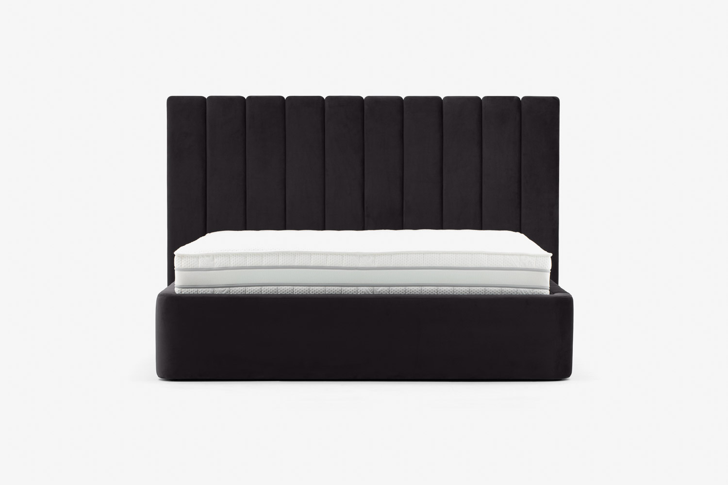 Das Kopfteil des Bettes besteht aus vertikalen Streifen, die jedes Schlafzimmer erwärmen und ihm eine weiche und gemütliche Atmosphäre verleihen.