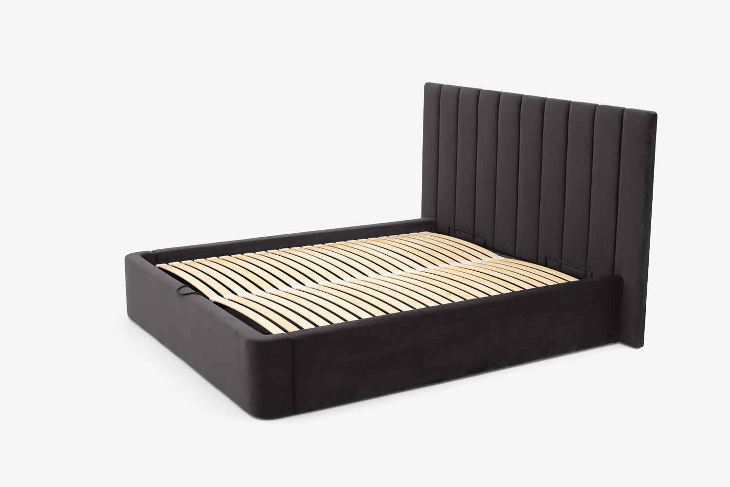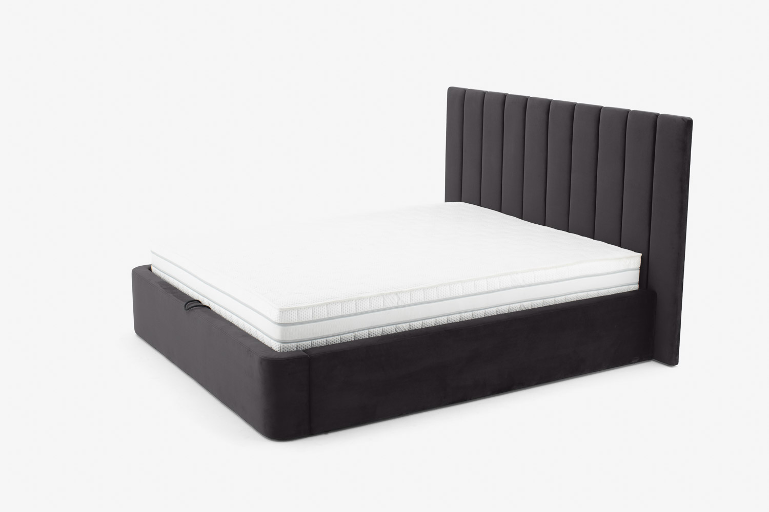 Der Vorteil des Bettes liegt in der funktionalen Nutzung des Raumes unter dem Möbel, in dem sich ein großer und geräumiger Bettzeugbehälter verbirgt.