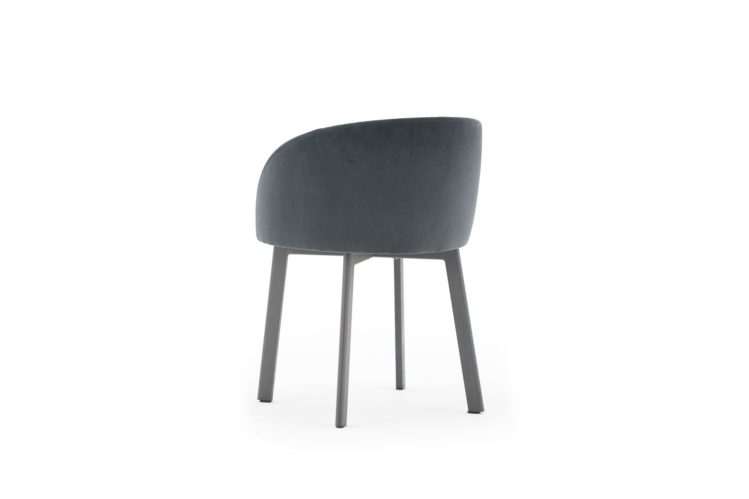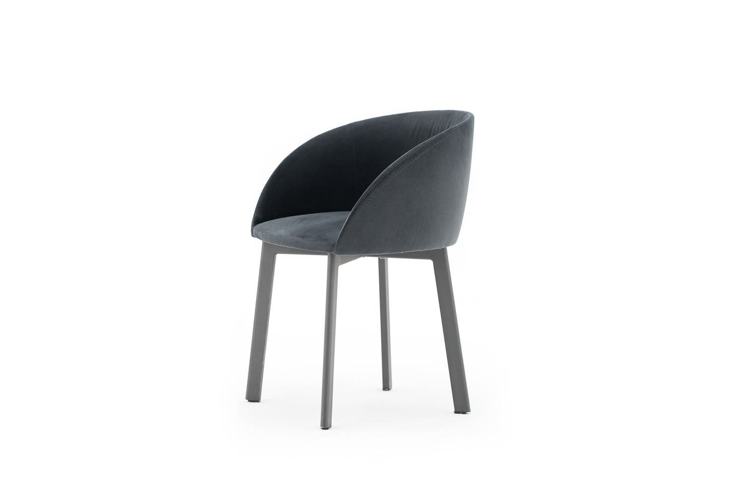 Smukłe, metalowe nogi oraz subtelnie zaokrąglony kształt oparcia i siedziska nadają krzesłu wyjątkowy charakter.