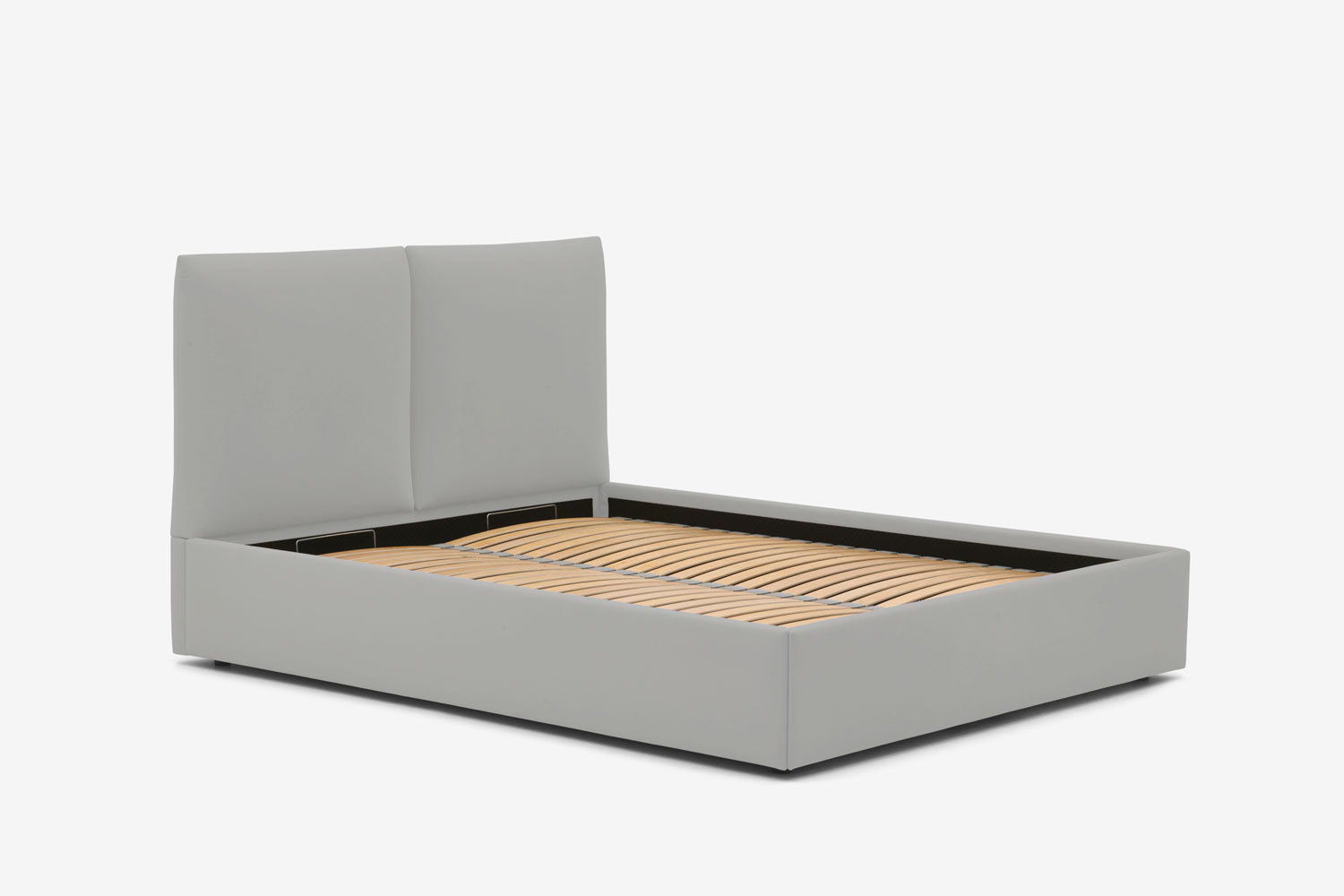Der Vorteil des Bettes liegt in der funktionalen Nutzung des Raumes unter dem Möbel, in dem sich ein großer und geräumiger Bettzeugbehälter befindet.