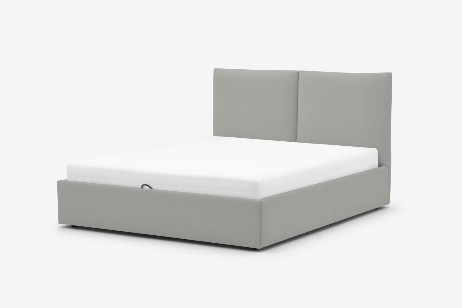 Das Bett hat den Vorteil eines schmalen Kopfteils, was das Modell ideal für kleine und mittelgroße Schlafzimmer macht. Die Kopfstütze in Form von zwei Kissen bietet eine weiche Rückenstütze und eine minimalistische Innenausstattung.