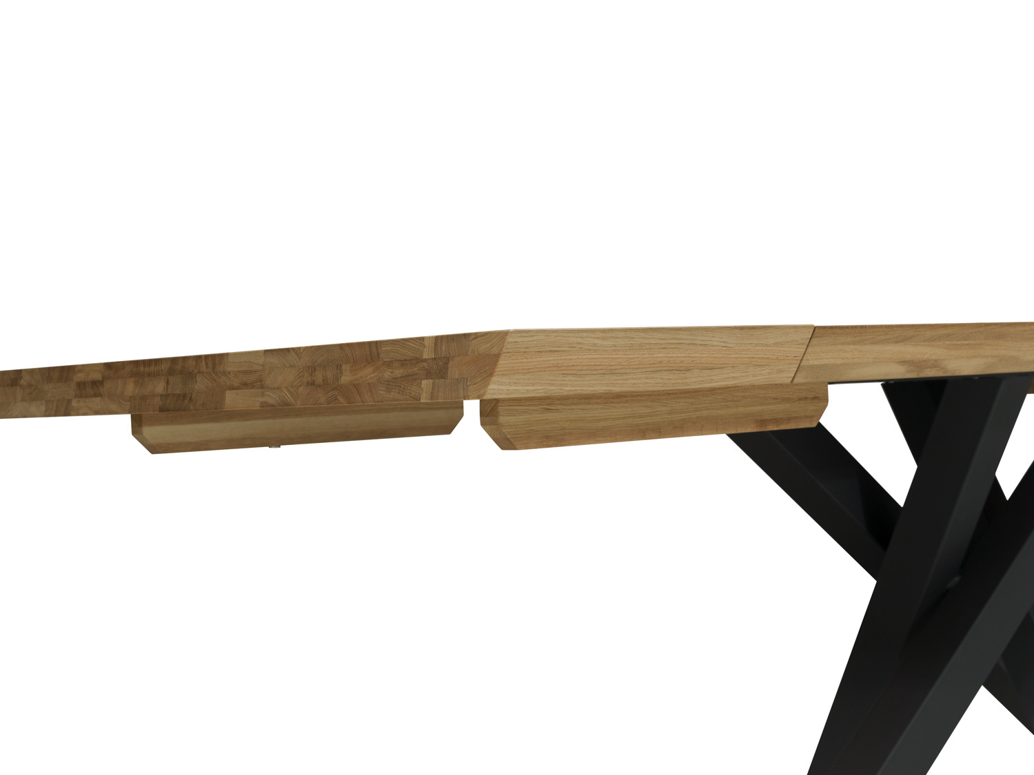 Der Tisch bietet die Möglichkeit, seine Fläche zu vergrößern, indem man ihn mit zusätzlichen, an den Kanten des Möbels angebrachten Verlängerungen von je 40 cm verlängert.