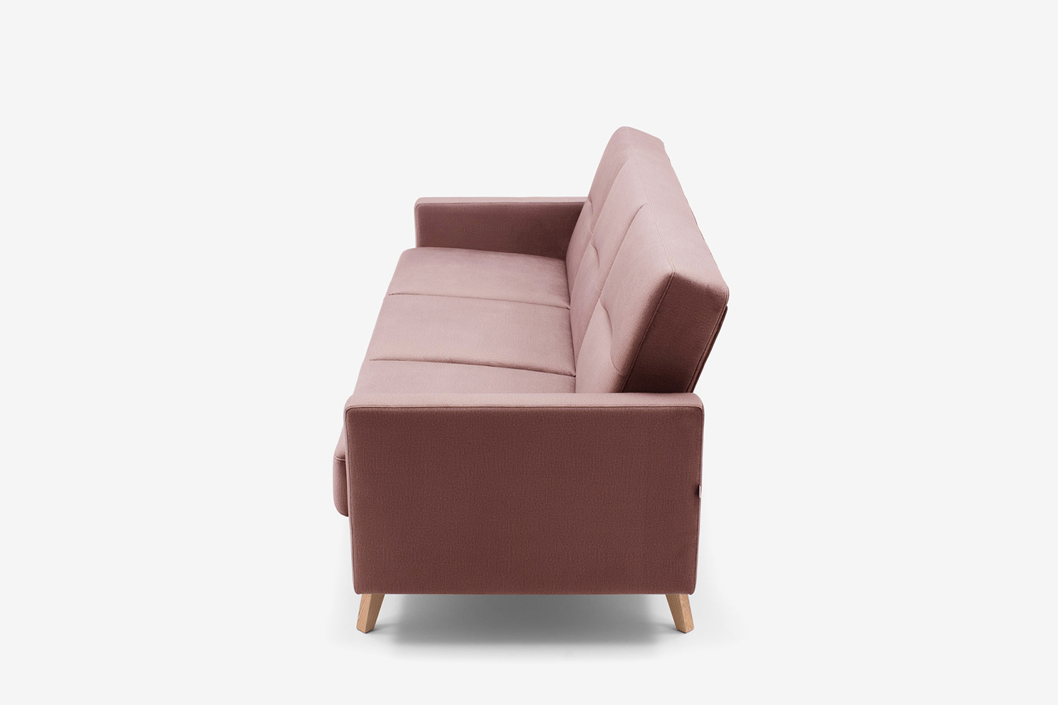 Die Beine des Sofas sind aus Holz, und dank ihrer Höhe ist die Reinigung unter dem Möbel einfach und angenehm. Diese Funktionalität kommt der Einfachheit des täglichen Gebrauchs sehr zugute.
