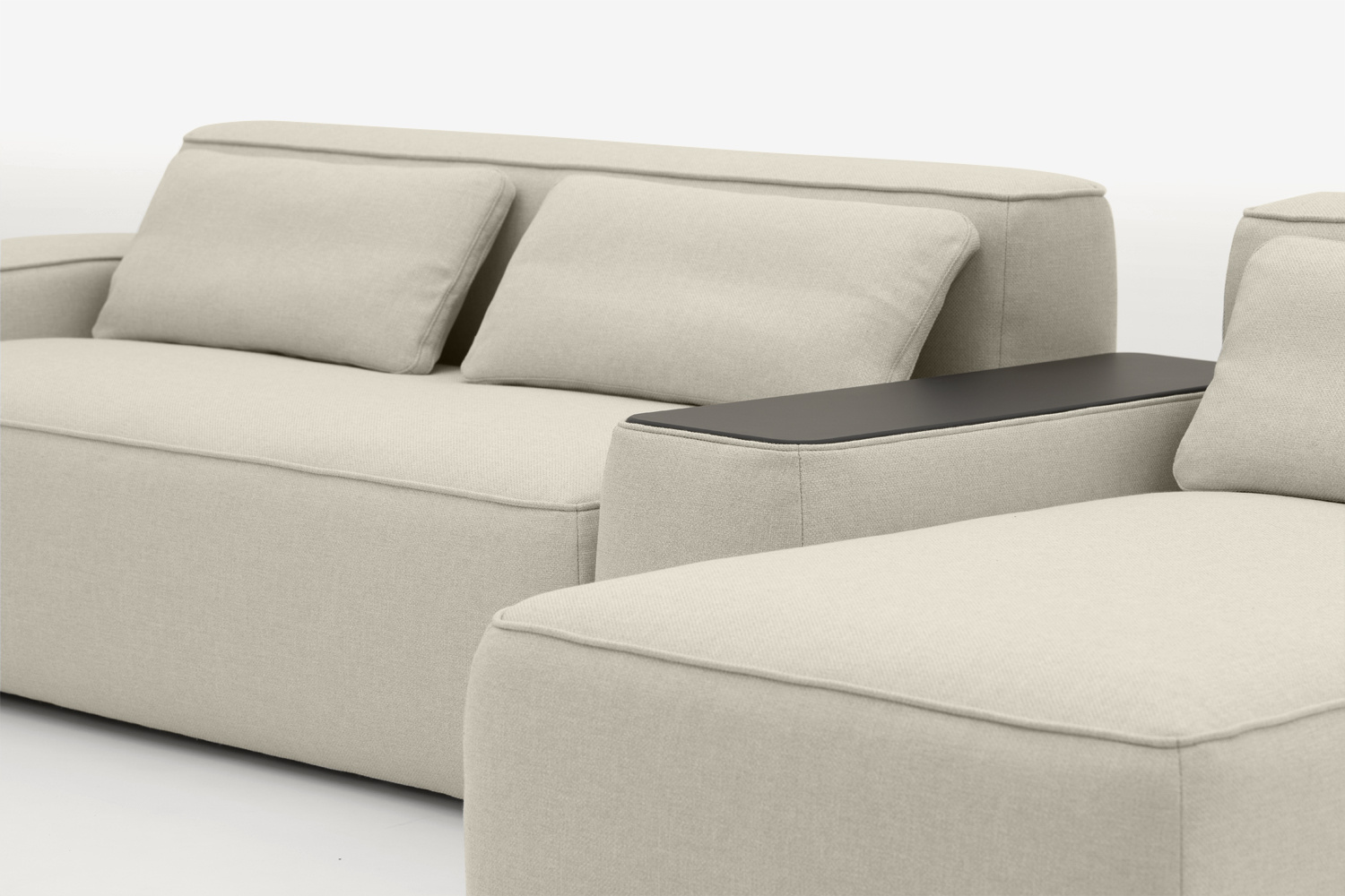 Die Verwendung einer dekorativen Naht in jedem Modul unterstreicht die Form und verleiht der Kollektion ein gemütliches Aussehen.