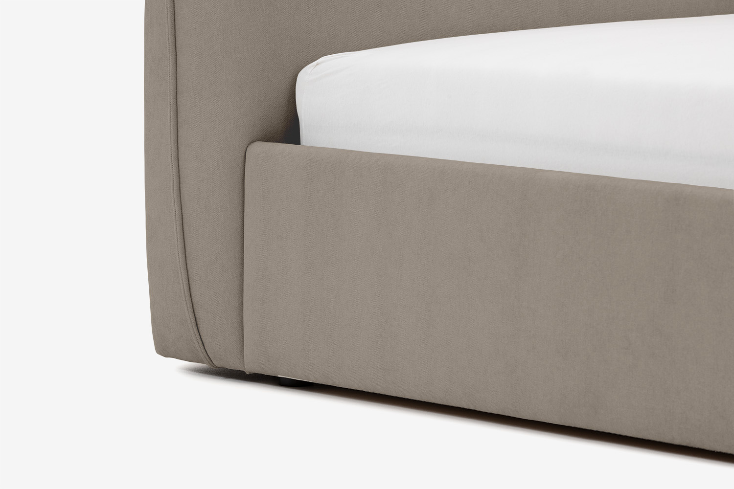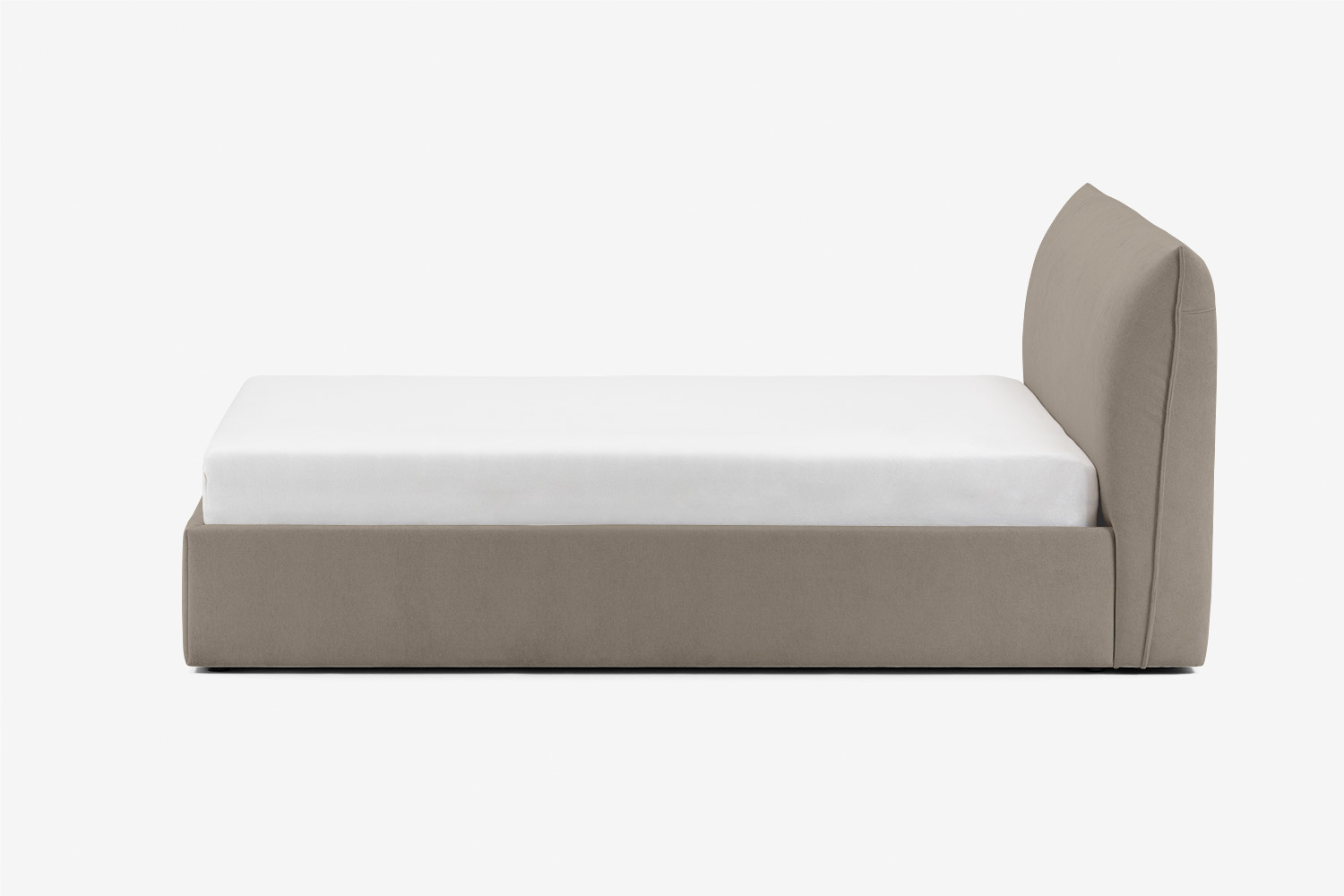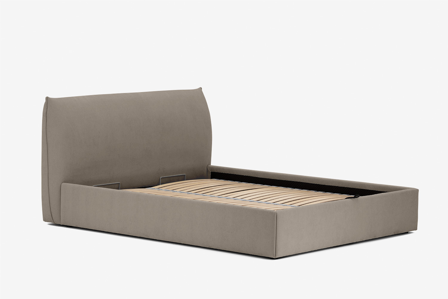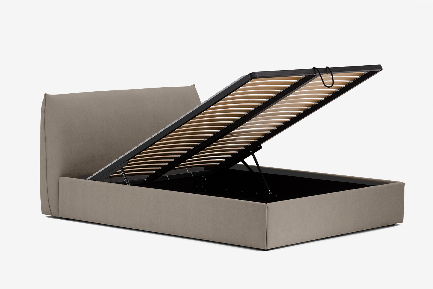 The minimalist design of the bed does not detract from the character of the interior and makes it possible to furnish the bedroom in a variety of ways.