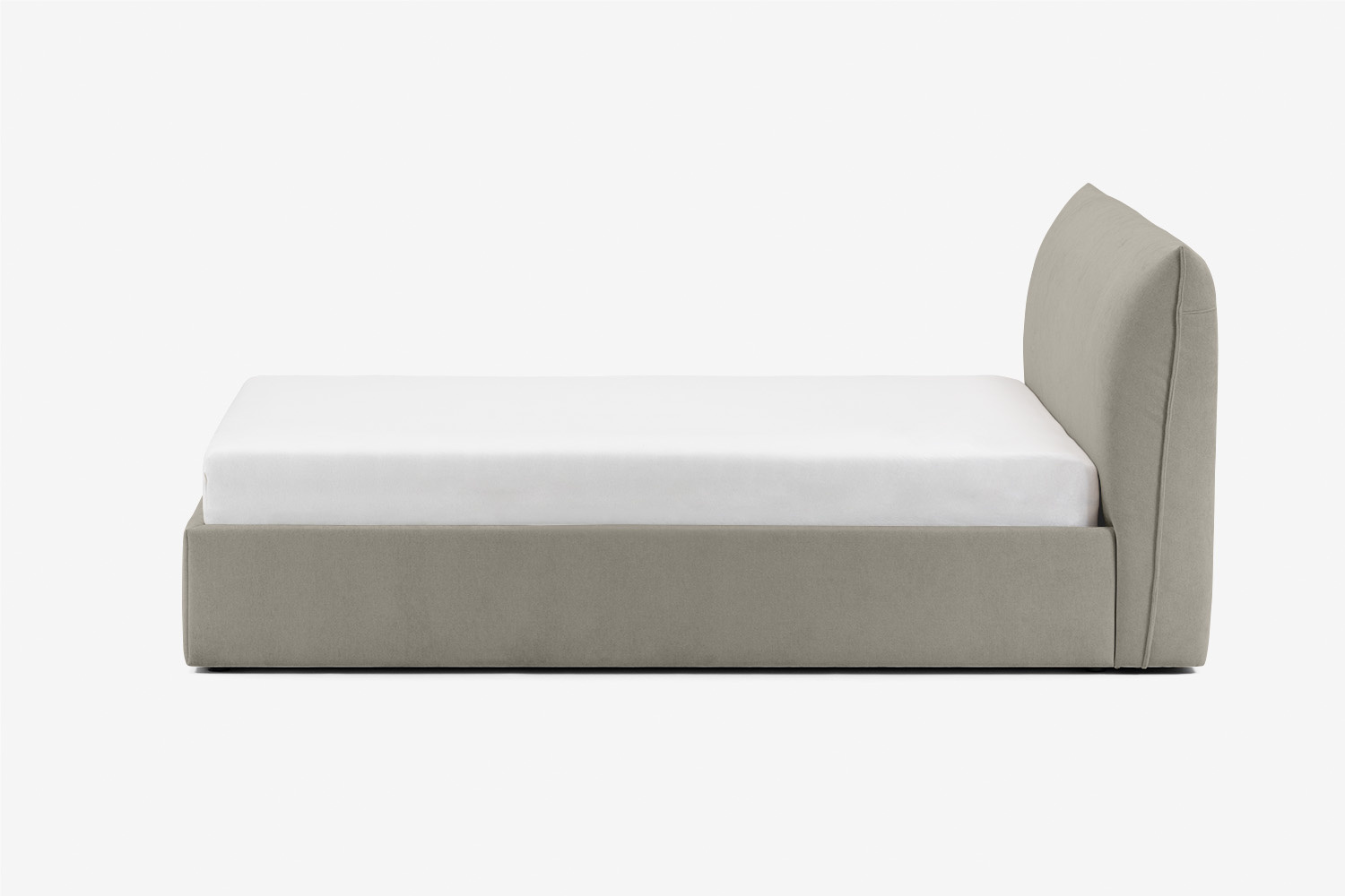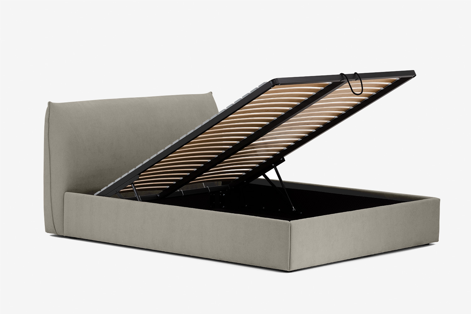 The minimalist design of the bed does not detract from the character of the interior and makes it possible to furnish the bedroom in a variety of ways.
