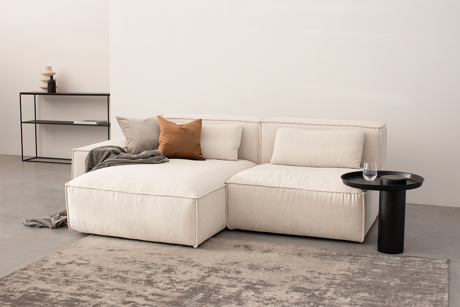 The use of a decorative seam in each module emphasises the square shape and gives the collection a cosy look.