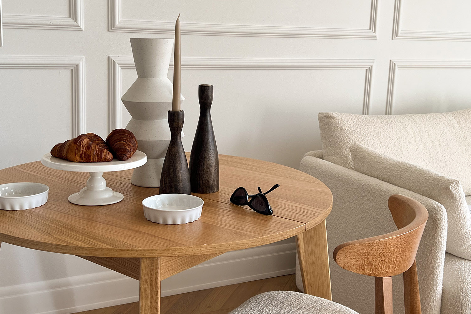 Natural beech wood is characterised by a subtle elegance that makes a room look very stylish and does not require many decorative accessories.