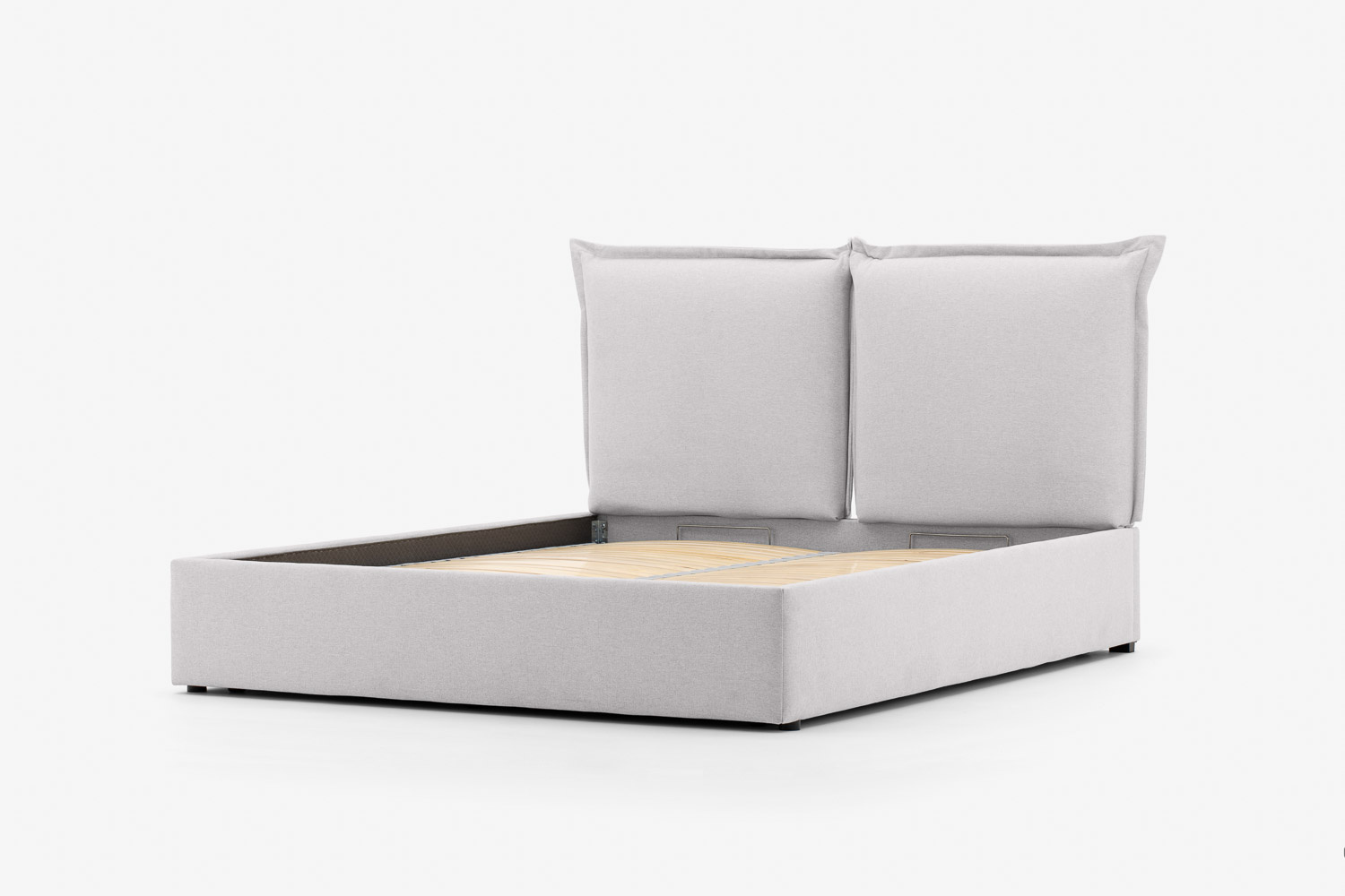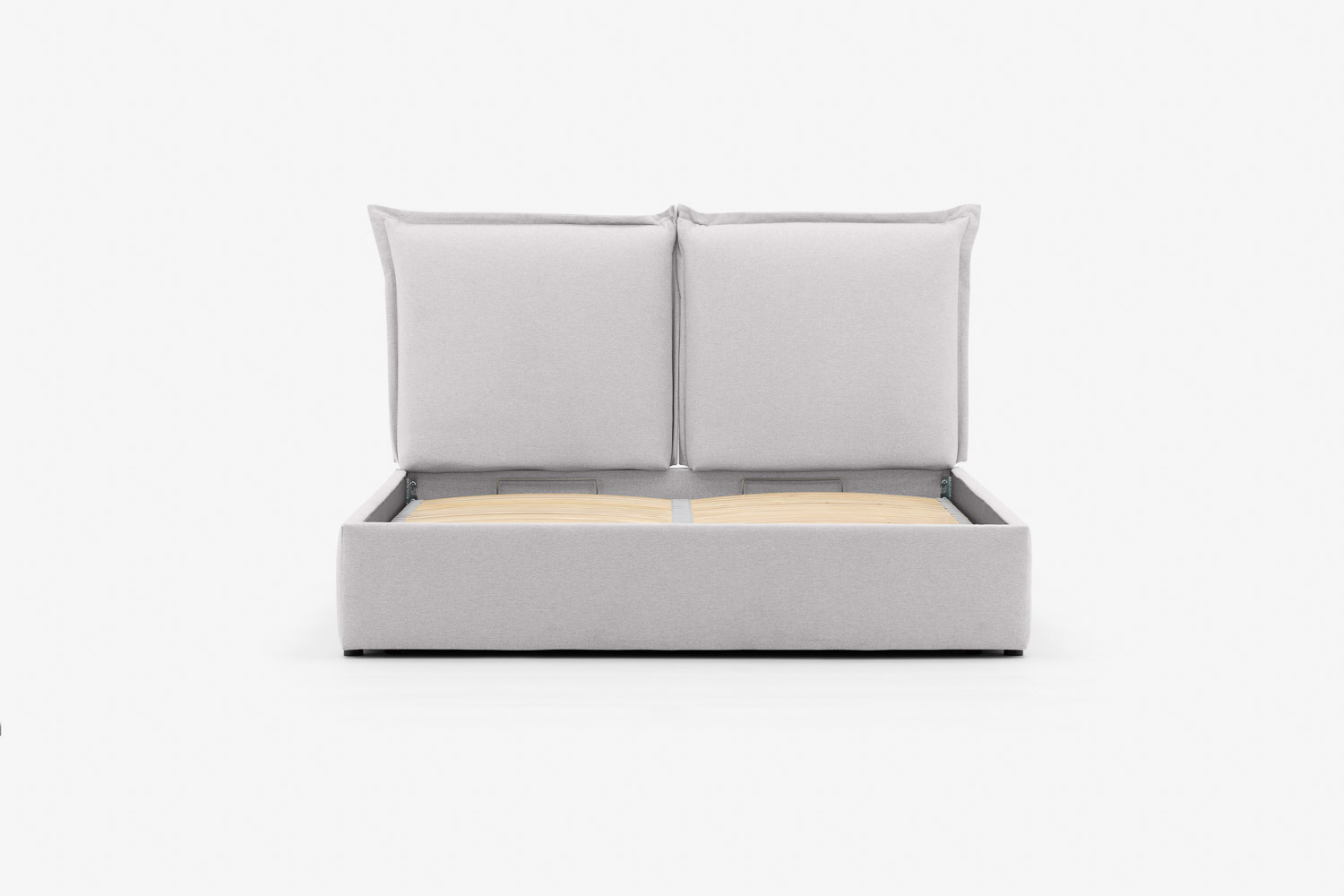 The minimalist design of the bed does not detract from the character of the interior and makes it possible to furnish the bedroom in a variety of ways.