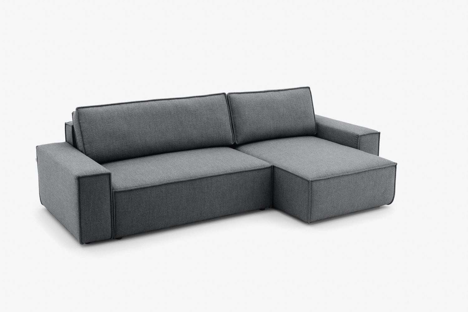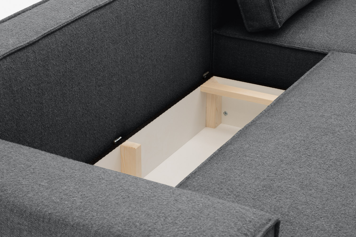 The advantage of the corner sofa with the DL folding system is the functional utilisation of the space under the seat, where a large and spacious bedding container is concealed.