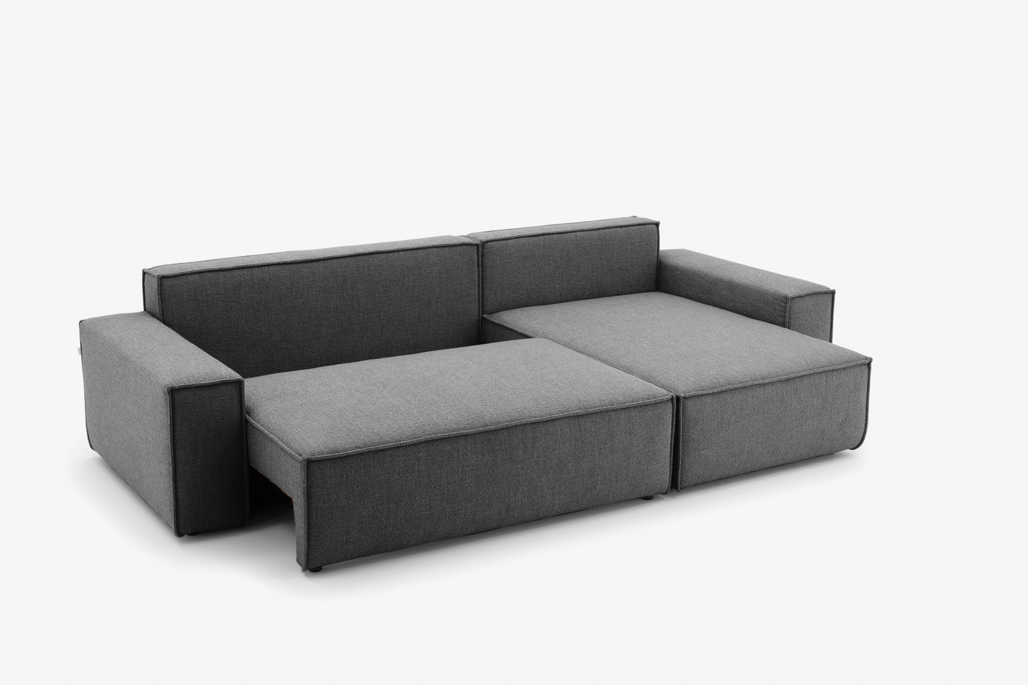 The DL system is very simple and intuitive. To unfold the corner sofa so that you have a flat and springy lying surface, simply slide out the seat and then fold down the backrest.