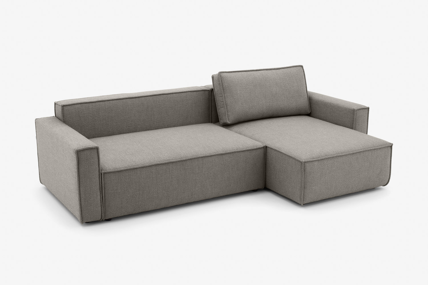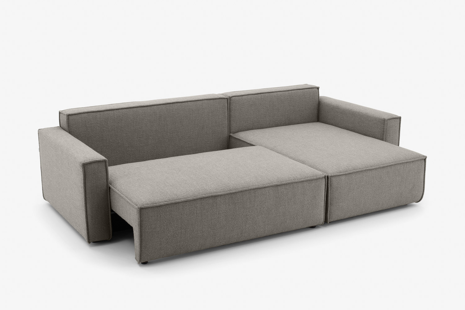 The DL system is very simple and intuitive. To unfold the corner sofa so that you have a flat and springy lying surface, simply slide out the seat and then fold down the backrest.