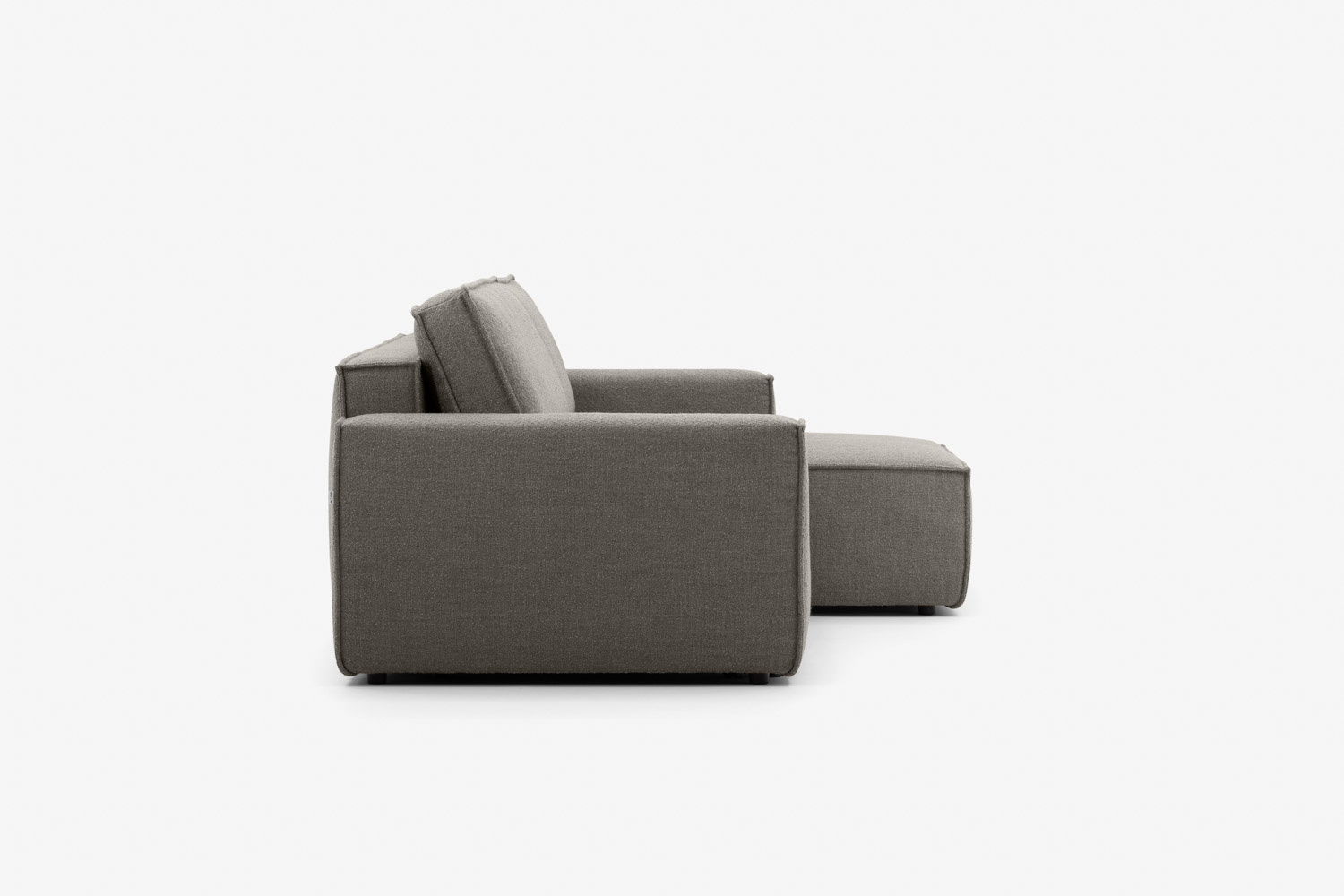 The advantage of the corner sofa with the DL folding system is the functional utilisation of the space under the seat, where a large and spacious bedding container is concealed.
