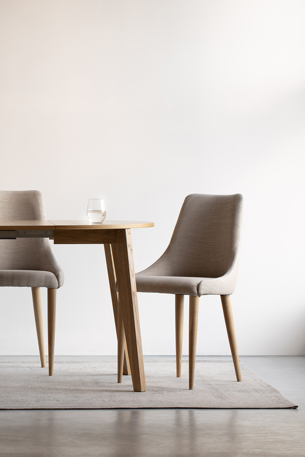The model is characterised by its wooden leg, which gives it a Scandinavian character. It is available in six oiled oak colours.