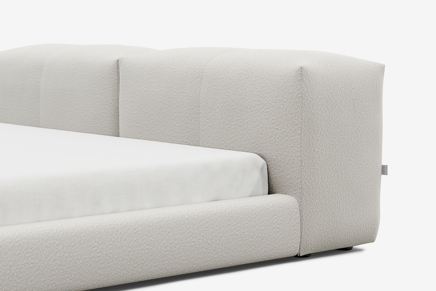 The bed is also upholstered at the back of the headboard so that it can be placed in the centre of the room.