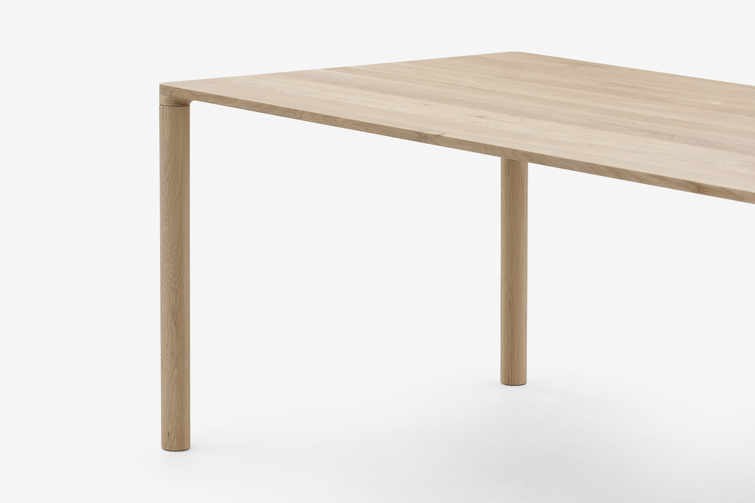 • The MINC table with its simple shapes and cylindrical legs is the perfect complement to minimalist spaces. Solid oak wood guarantees durability for years and the simple form ensures a timeless look.