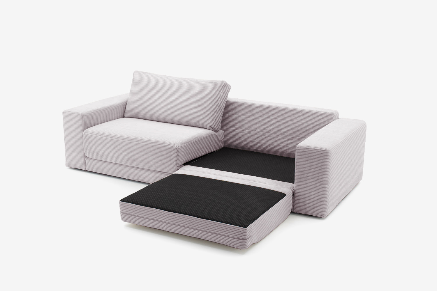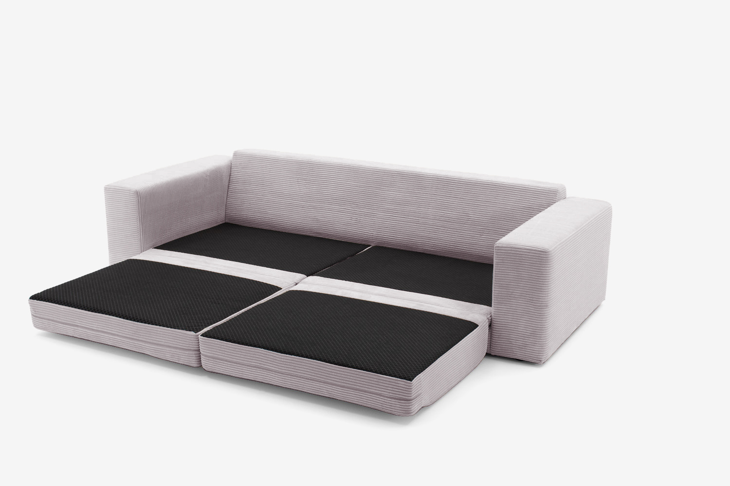 Rozkładanie dodatkowej, wyjątkowo dużej powierzchni do spania jest bardzo proste, a mebel pełniąc funkcję zarówno siedziska, jak i łóżka wygląda dobrze i pozostaje wygodny.