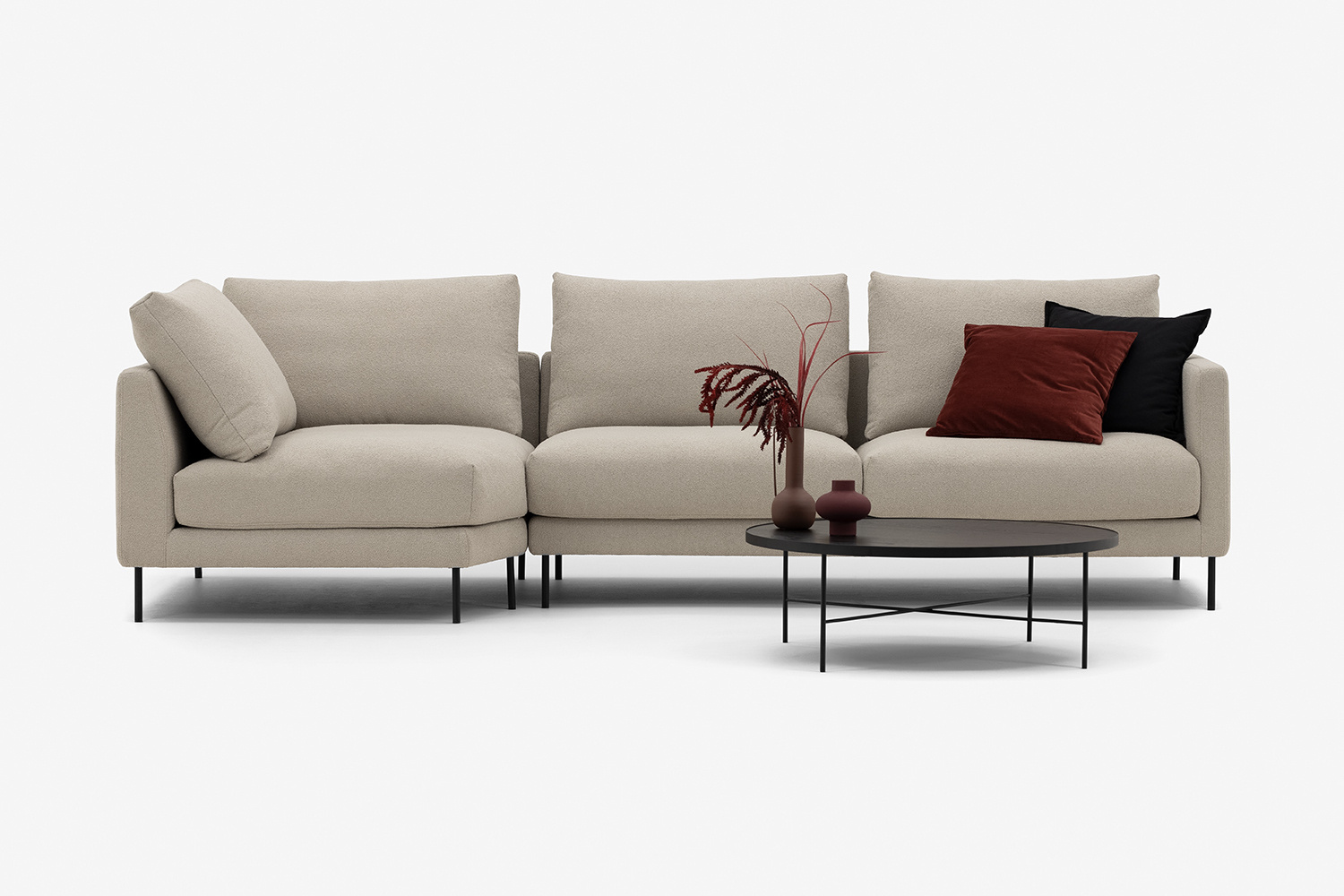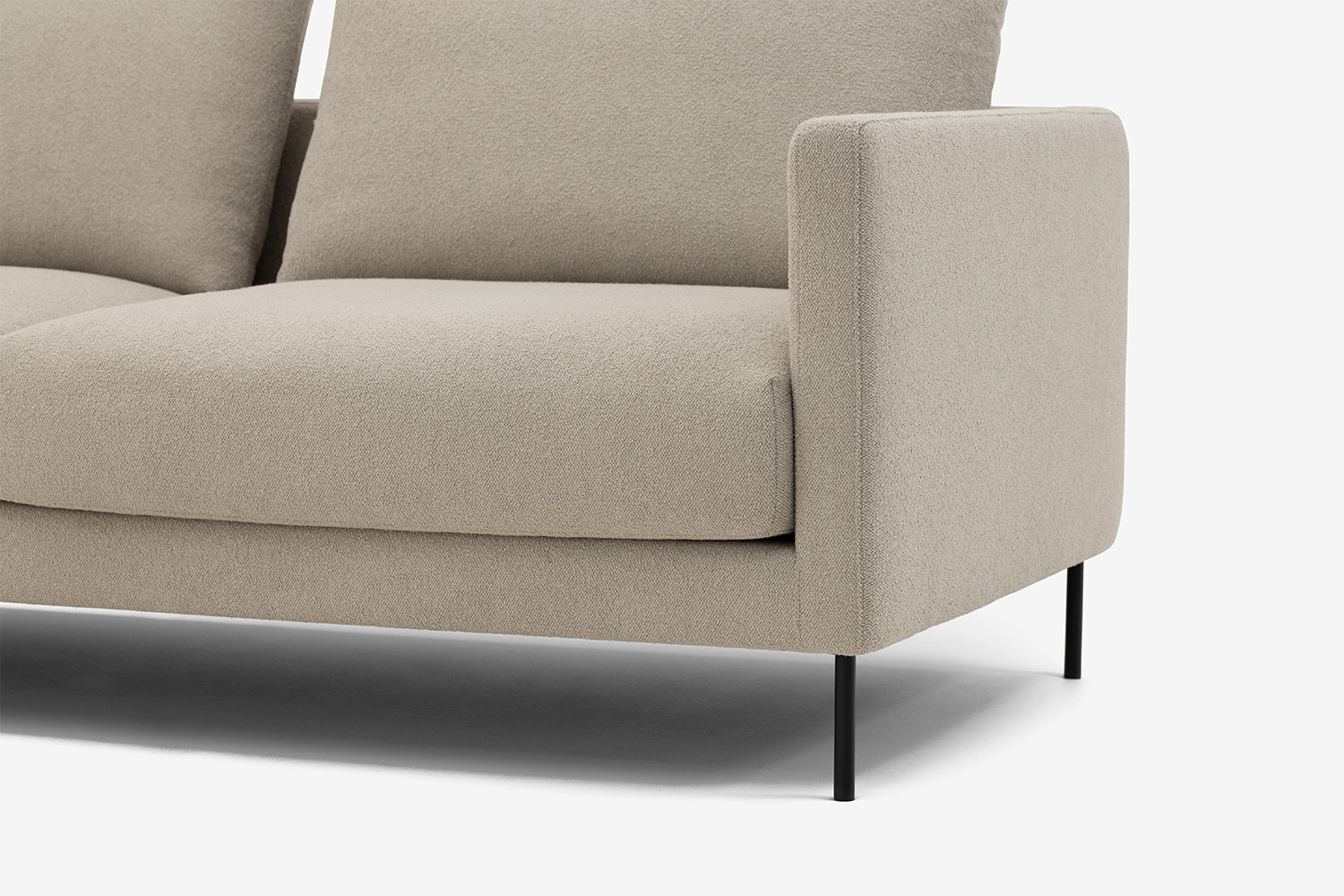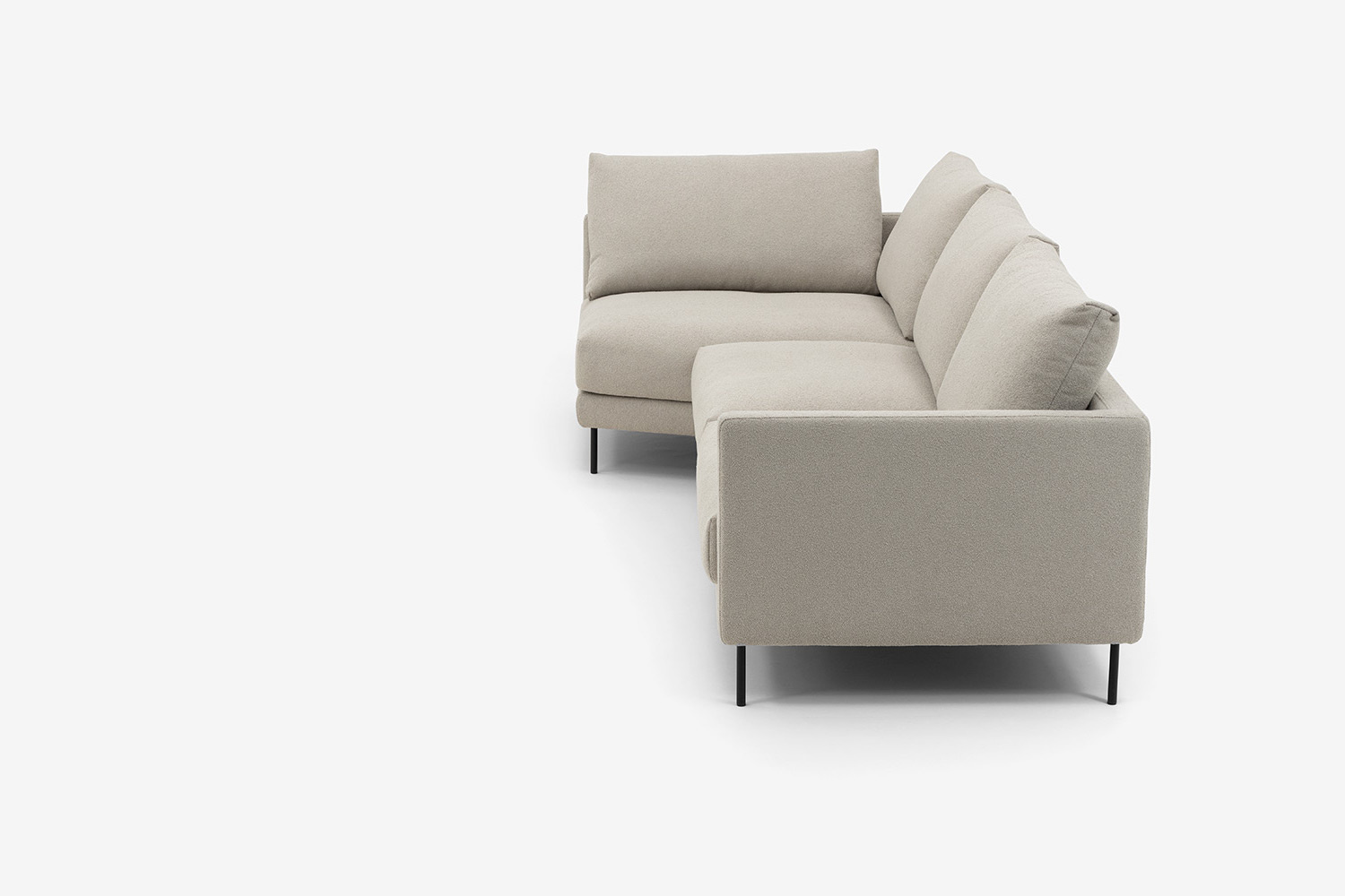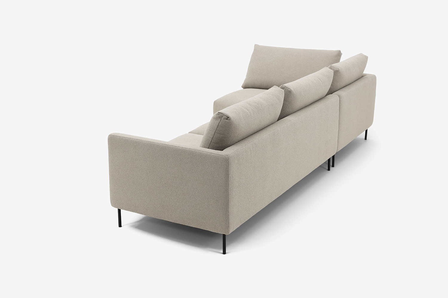 The legs of the corner sofa are made of black metal, and thanks to their height, cleaning under the furniture is easy and pleasant. This is very favourable for the simplicity of daily use, but also contributes to its elegance.