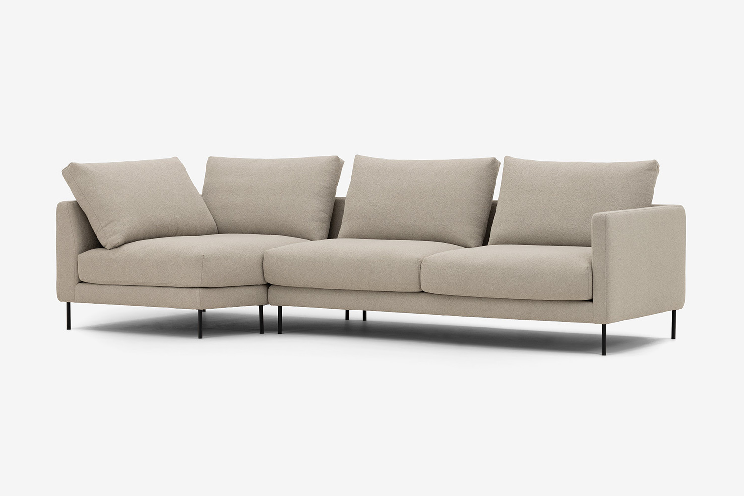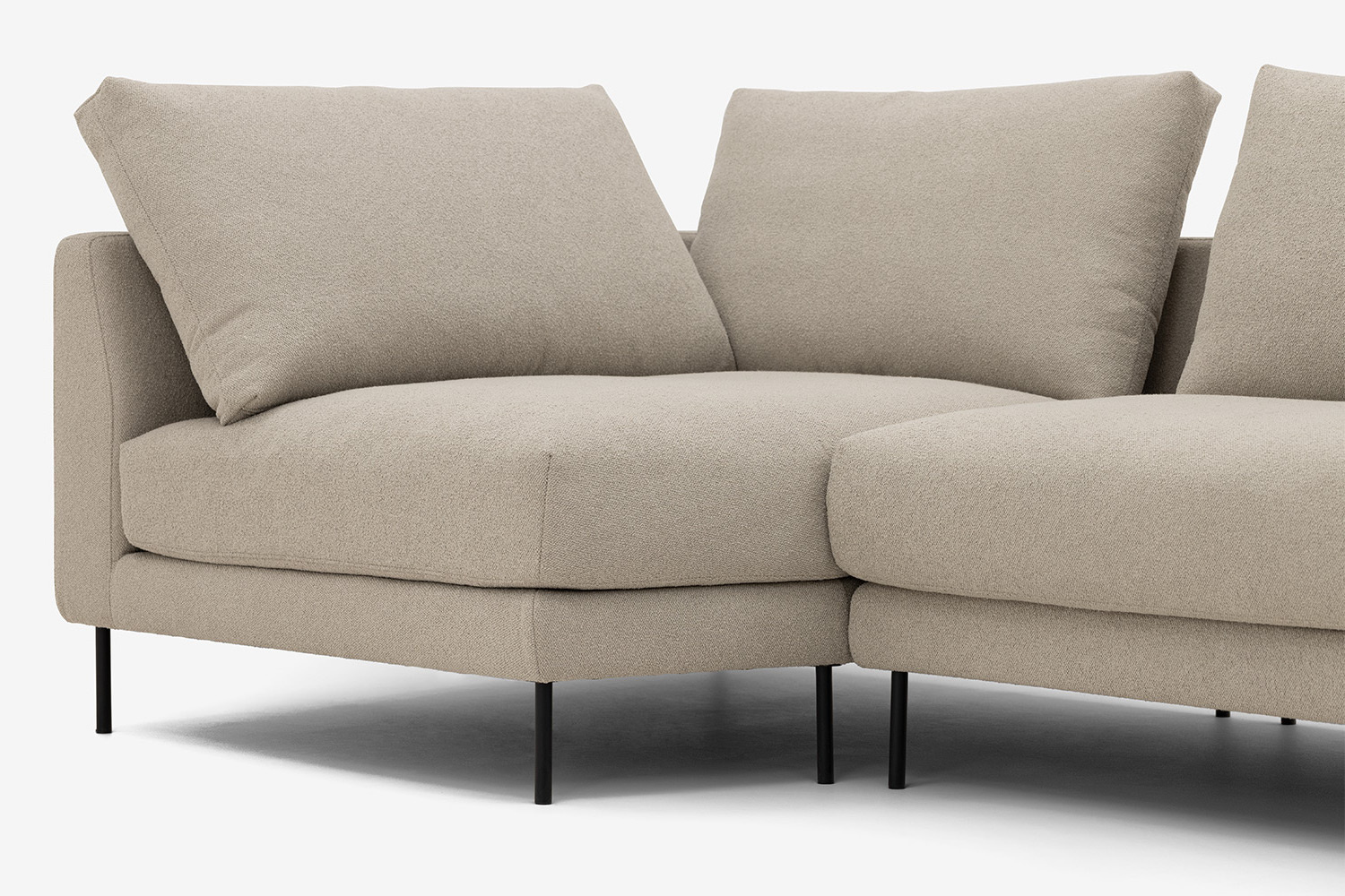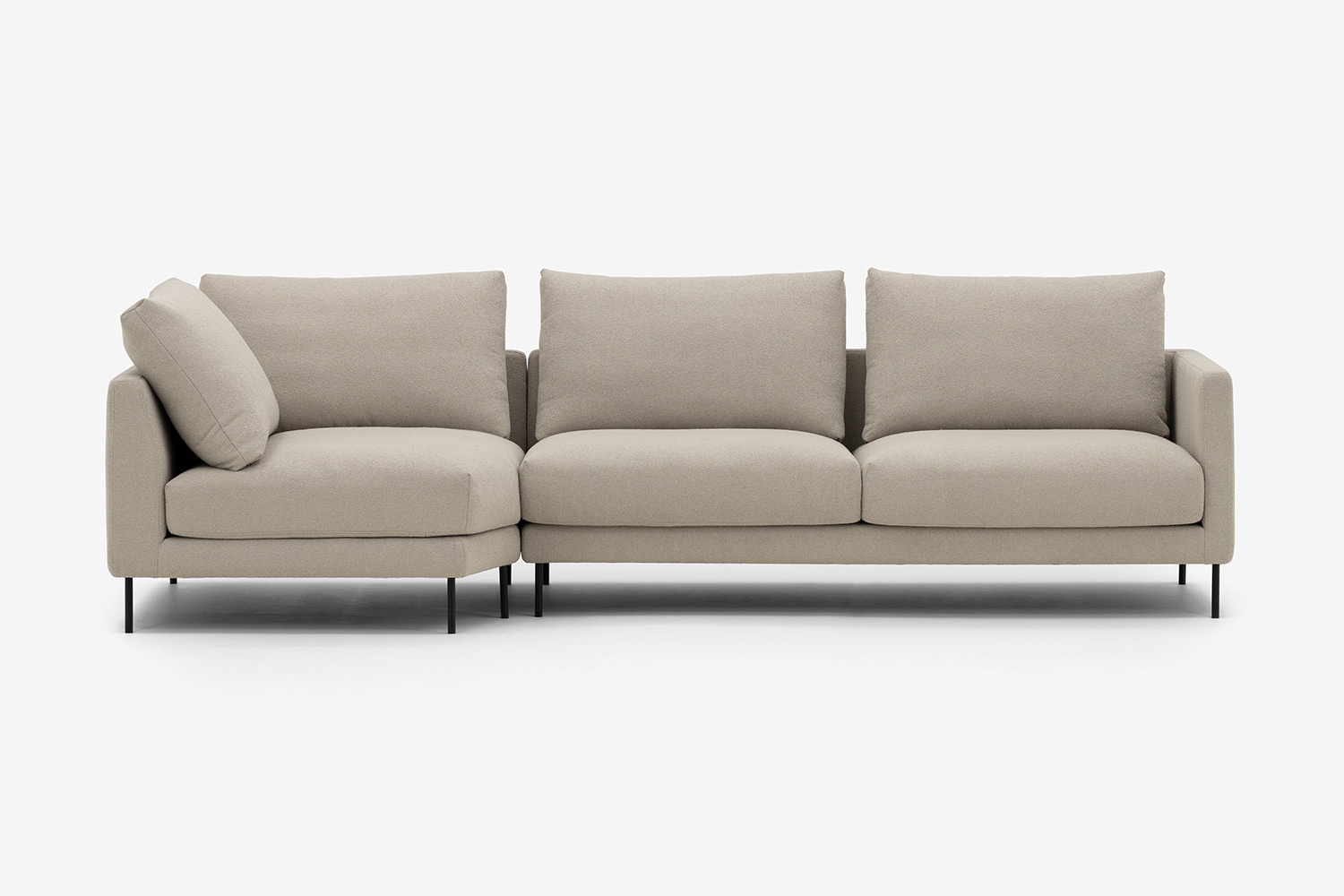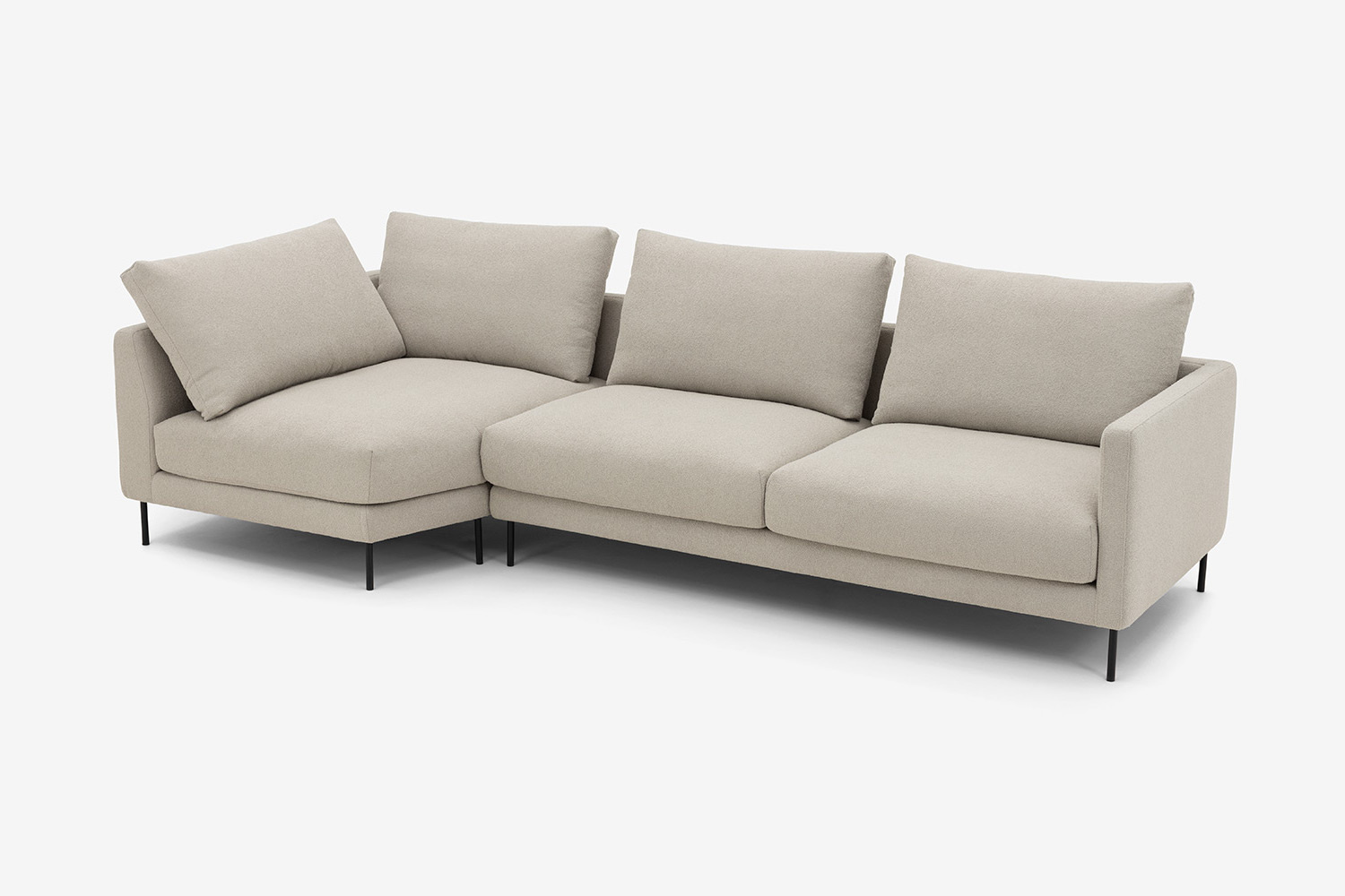 The legs of the corner sofa are made of black metal, and thanks to their height, cleaning under the furniture is easy and pleasant. This is very favourable for the simplicity of daily use, but also contributes to its elegance.