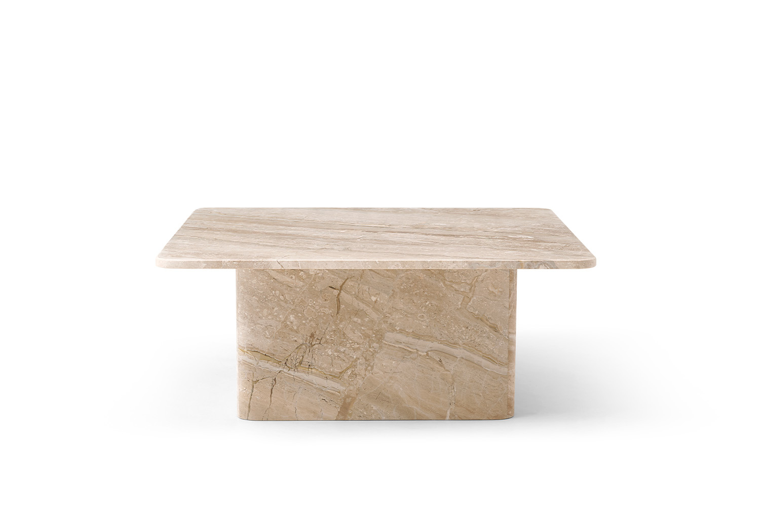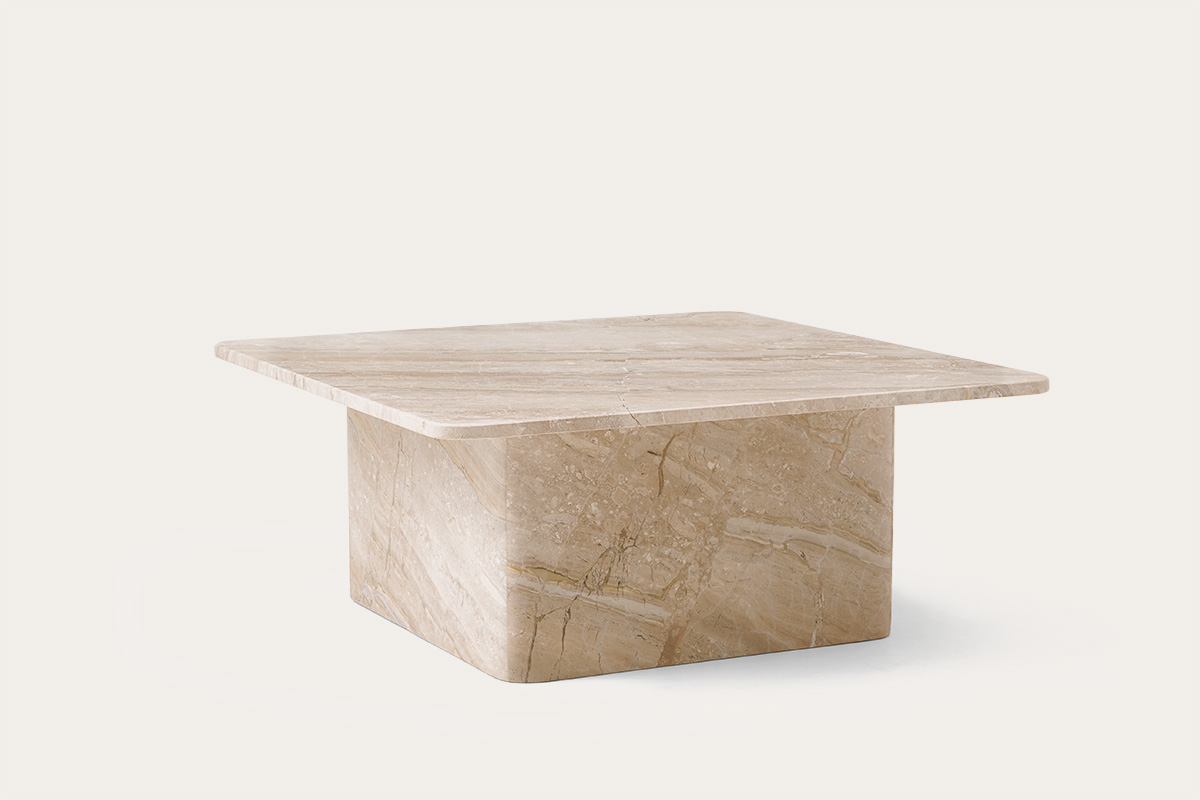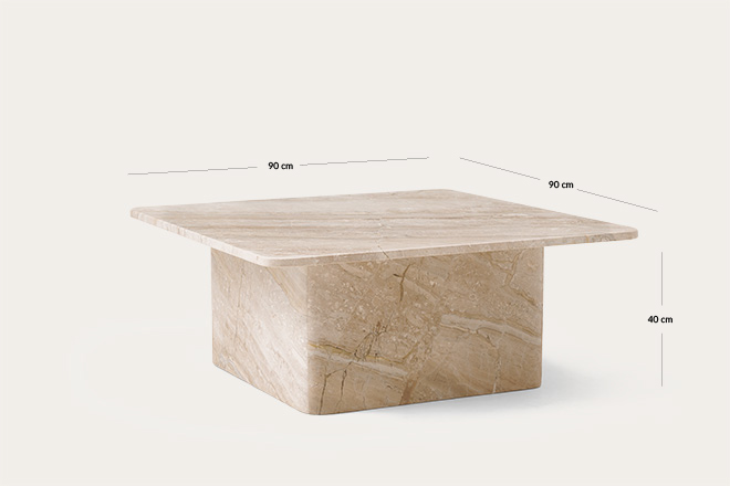 • The ORIN marble coffee table brings a refined elegance to any interior. Featuring a square top resting on a broad, solid block base instead of traditional legs, it offers exceptional stability and a distinguished look.