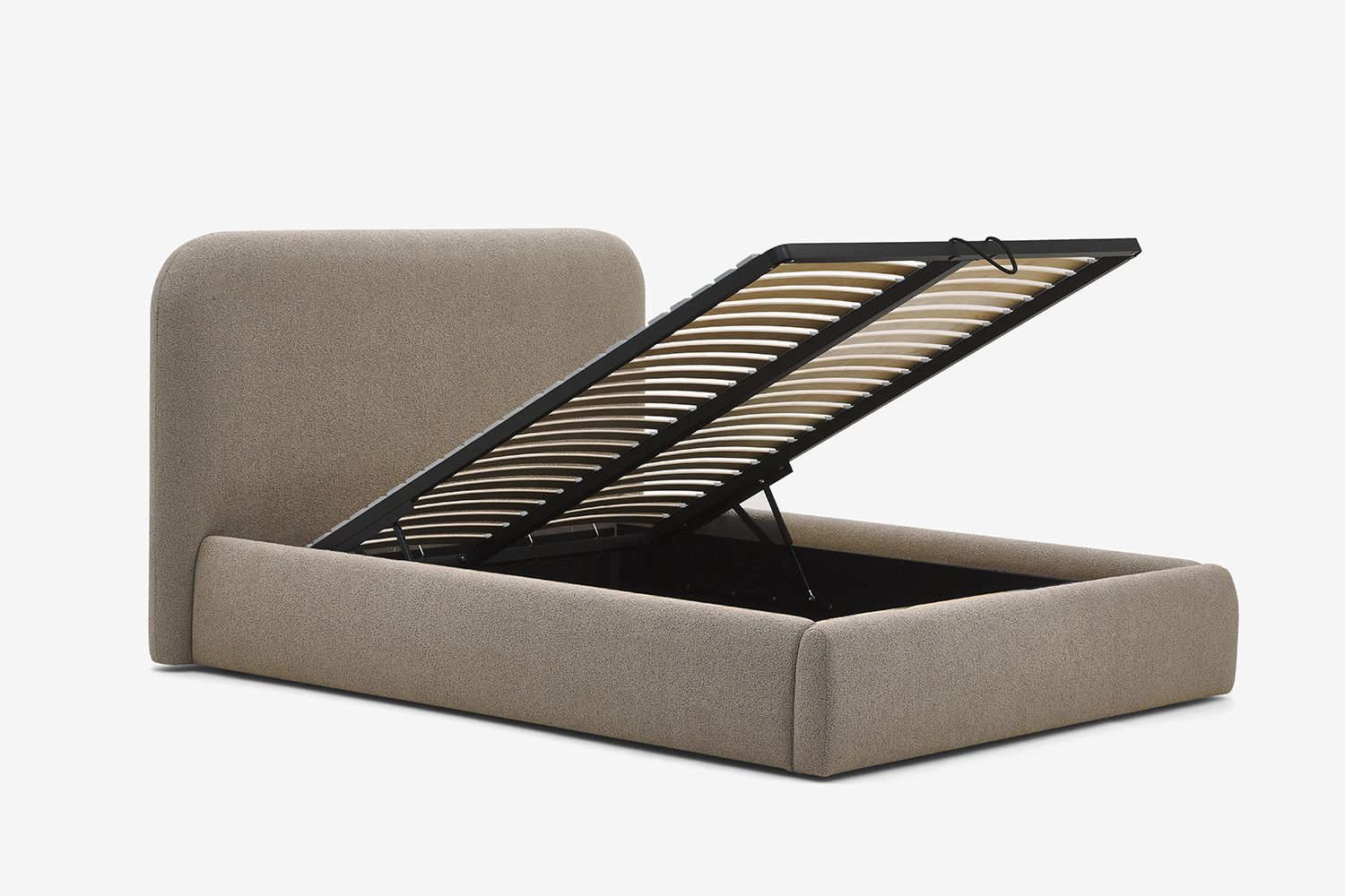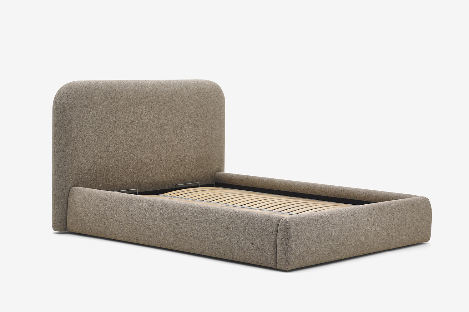 With its high and gently rounded headboard, ROUND brings a cosy character and timeless style to the bedroom. The roundness of the bed frame gives the model a visual flair.