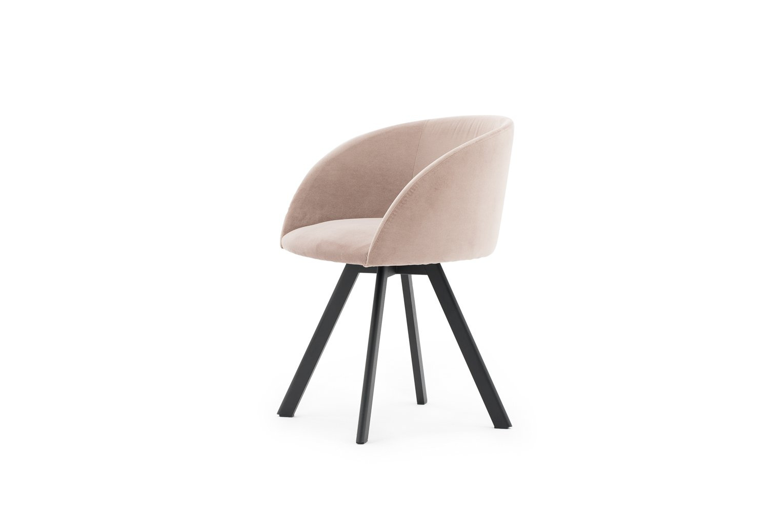 The slender metal legs and the subtly rounded shape of the backrest and seat give the chair a unique character.